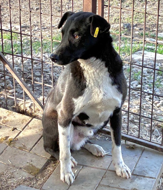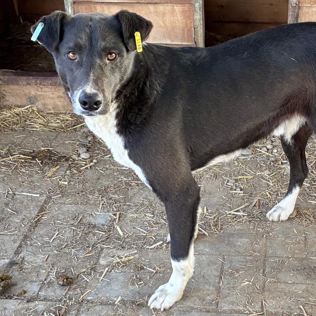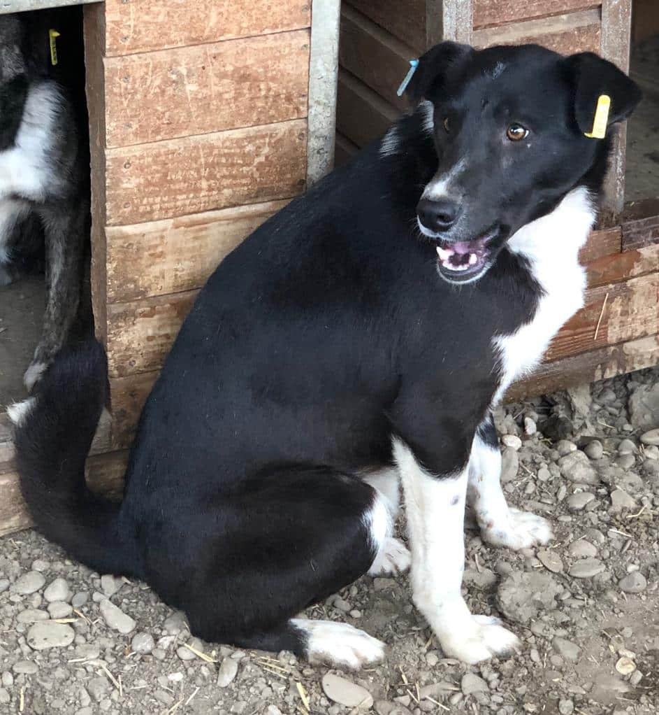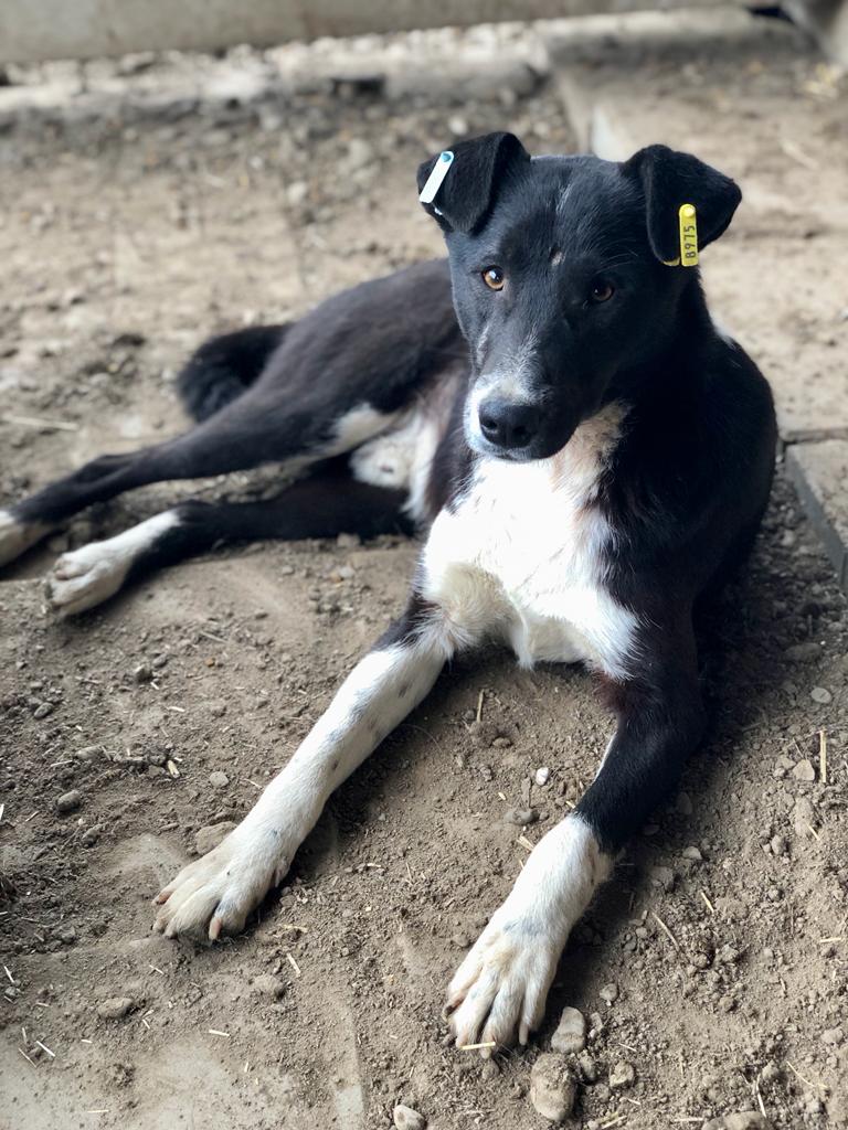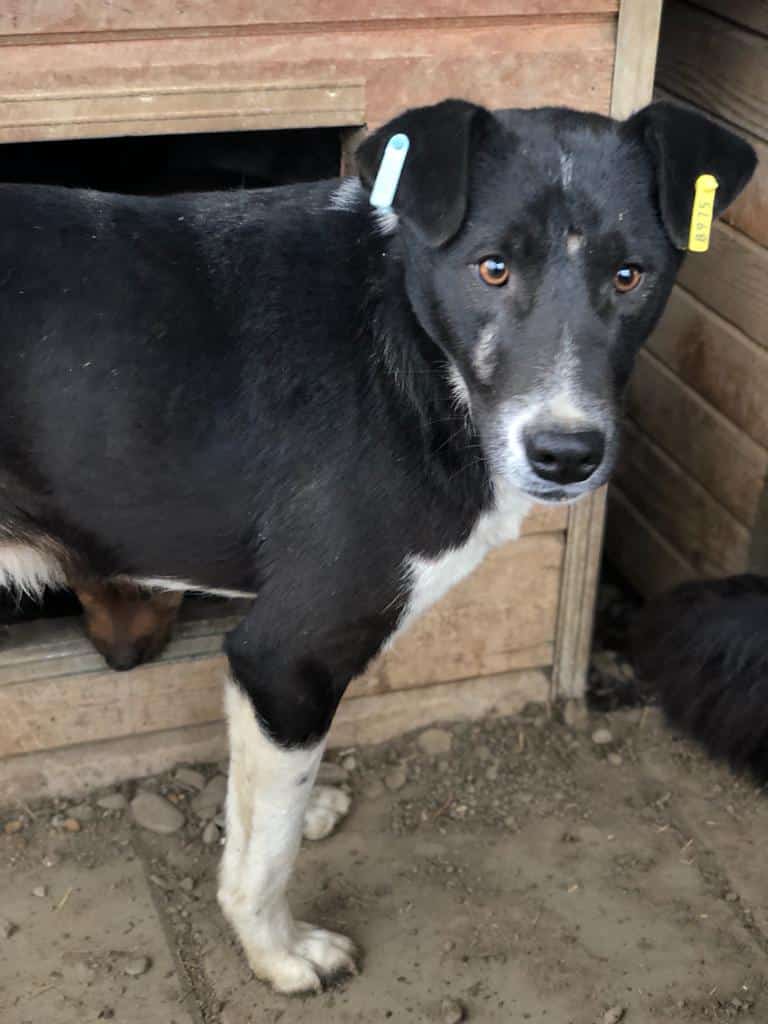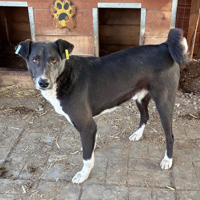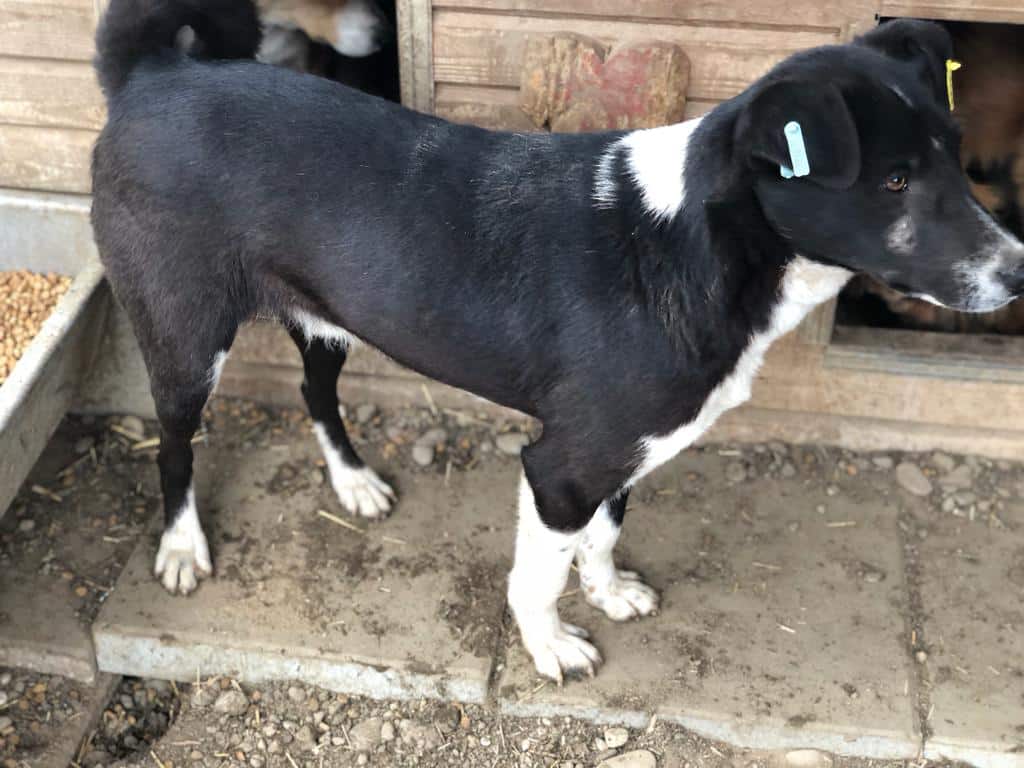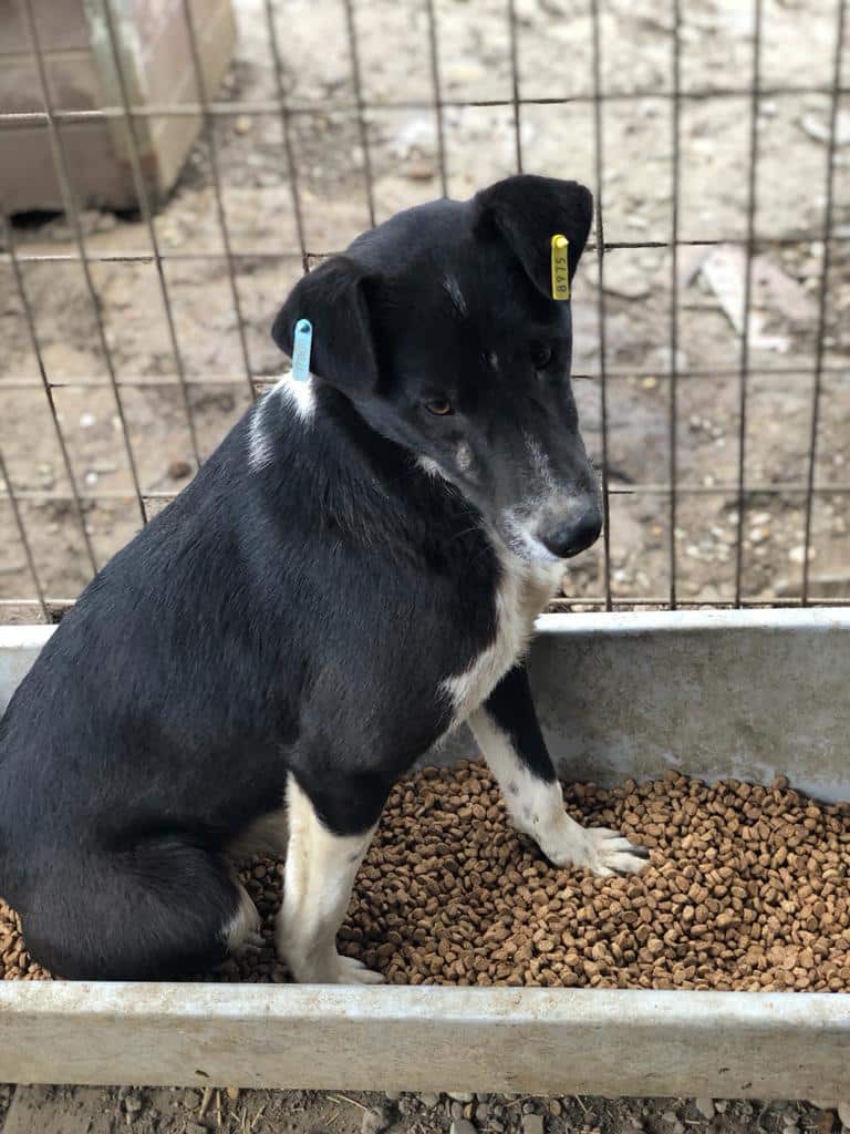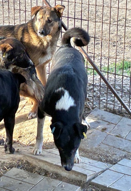 Er war die gesamte Zeit unseres Besuchs neugierig auf uns. Man spürte wie gerne er näher gekommen wäre. Im letzten Moment fehlte ihm stets der Mut. Menschen mit guter Hundeerfahrung würden ihn sicherlich innerhalb weniger Tage zutraulicher bekommen. Leckerchen finde er klasse und nimmt sie auch mit etwas Sicherheitsabstand aus den Fingern. In seinem 9er Rudel zeigt er sich sehr verträglich.