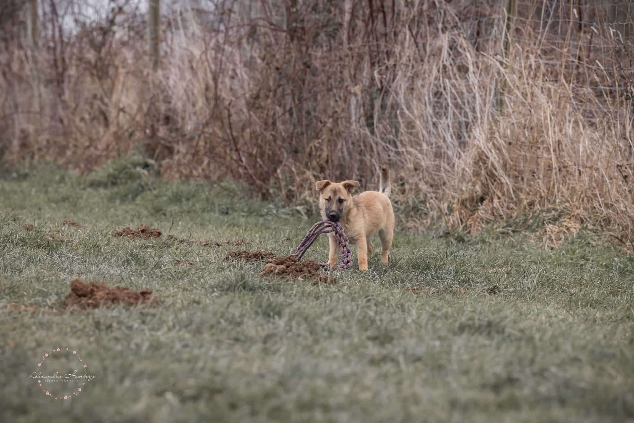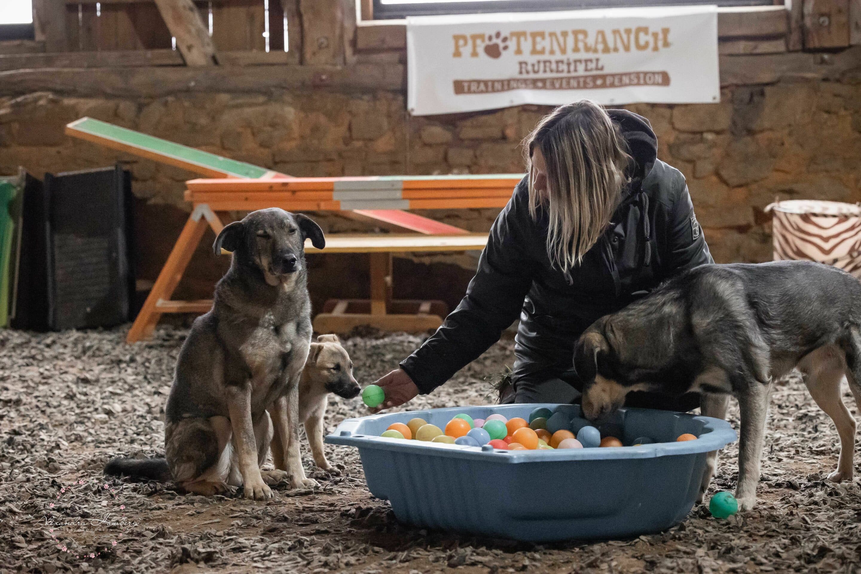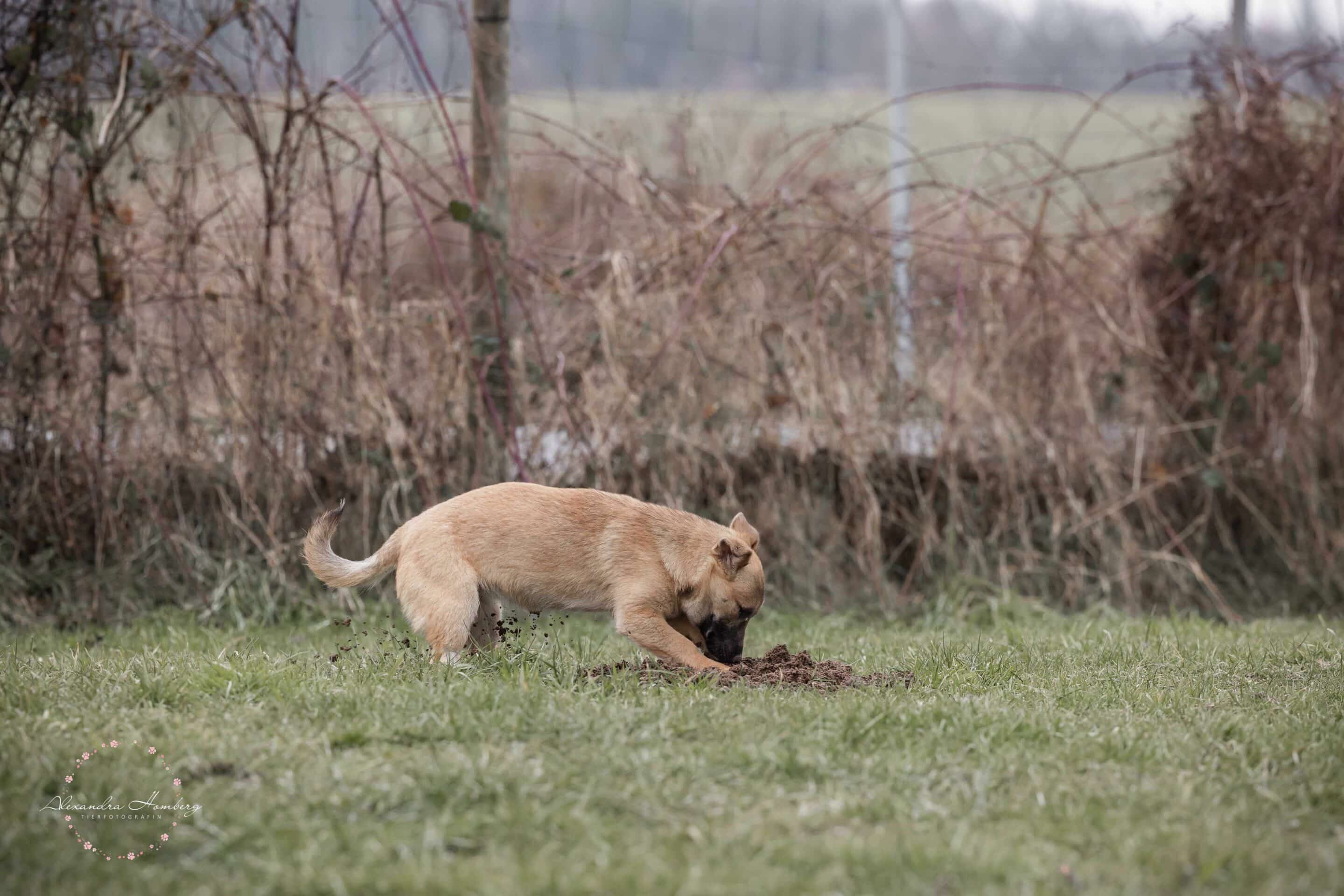 Inzwischen ist Taika komplett angekommen. Sie liebt es, mit meinem Rudel zu toben, über die Wiese oder den Hof zu rennen, in Erdhaufen zu buddeln, mit mir zu kuscheln, bei Spaziergängen die Welt zu erkunden und meine Handschuhe oder Sonstiges zu klauen. Das fehlende Auge stört sich nicht im Geringsten. Taika ist sehr agil, bewegungsfreudig, verspielt, verschmust, neugierig und absolut sozialverträglich mit ihren Artgenossen. Und hartnäckig. Wenn meine Hunde nicht mit ihr spielen möchten oder sie eine Ressource von ihnen haben möchte, nervt sie ganz charmant so lange, bis ihr gegenüber sich geschlagen gibt. Sie liebt es, unterwegs zu sein und durch Feld, Wald und über Wiesen zu streifen. Neue Situationen, Begegnungen mit Traktoren, Joggern, Radfahrern usw., verunsichern sie noch. Hier braucht sie Unterstützung vom Menschen. Da sie sich an ihren Artgenossen orientiert, ist mindestens ein weiterer vorhandener Hund in ihrem zukünftigen Zuhause ein Muss.
