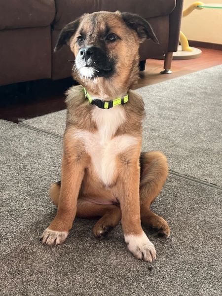 Auf den Kopf bin ich auch nicht gefallen und ich freue mich schon riesig darauf mit dir die Welt zu entdecken! Ich lebe hier in einem bunt gemischten Rudel mit Alt und Jung, Groß und Klein sehr harmonisch zusammen und verstehe mich mit allen blendend. Ich bin ein sehr aufgeschlossener und menschenbezogener kleiner Knopf und ich sause sofort los, wenn ich meinen Namen oder einen Pfiff höre. Kinder sollten bereits standfest fest, da ich noch an Größe und Gewicht zulegen werden. Autofahrten verschlafe ich einfach und an der Leine bin ich welpentypisch unterwegs. Punkto Stubenreinheit muss ich ehrlich gestehen, dass ich schon mal die dafür ausgelegten Unterlagen benutze, ich schwöre aber hoch und Heilig, dass ich zielsicher bin! Ansonsten verrichte ich meine Geschäftchen im Großen und Ganzen aber bereits außerhalb der Wohnung, hier muss man nur auf die typischen Welpenzeiten achten, dann klappt das bereits sehr gut. Bei Fragen einfach das Pflegefraule kontaktieren, sie erzählt euch gerne mehr über mich und ihr dürft mich jederzeit besuchen