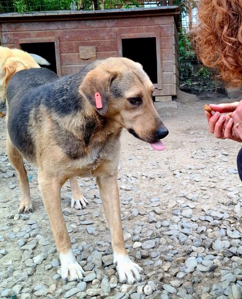 TALA war sehr aufgeregt und interessiert, als wir ihren Kennel betraten. Die angebotenen Leckerchen, nahm sie vorsichtig aus der Hand. Anfassen konnten wir sie allerdings nicht, da sie nach wie vor ausweicht. Sie ist bellfreudig und forderte uns bellend zur Leckerchenvergabe auf. Mit den Hunden in ihrem Kennel ist sie verträglich.