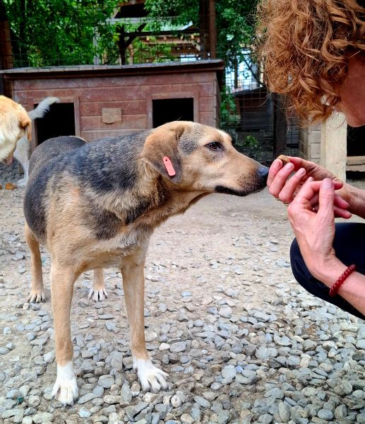 TALA war neugierig und offen und nahm gerne Leckerli aus der Hand. Als wir versuchten, sie in der Hütte zu streicheln, zeigte sie aber deutlich mit Abschnappen, dass ihr das nicht passt.