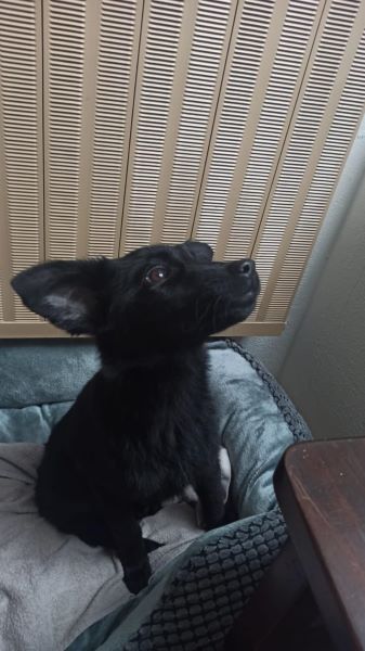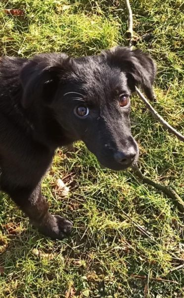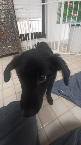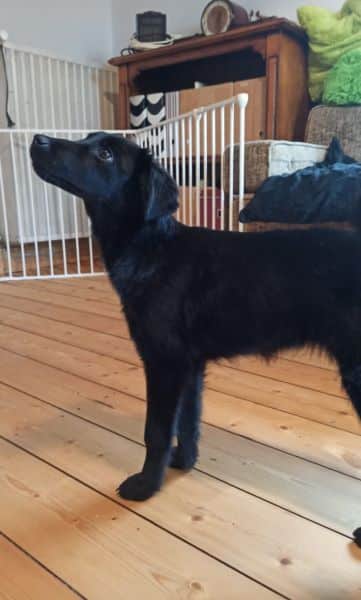 Talaya ist seit Anfang Dezember 2024 bei uns auf ihrer Pflegestelle. Sie ist eine lackschwarze, kleine Schönheit und wird bestimmt noch etwas wachsen, aber eine Riesin wird sie sicher nicht. Aktuell sieht sie aus wie ein Mini-Labrador.