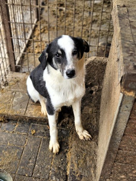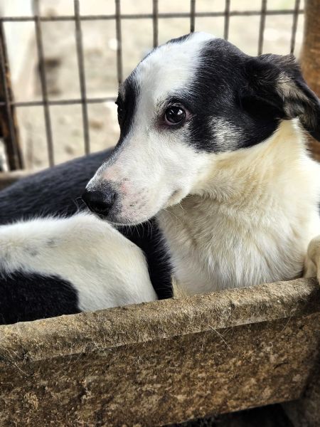 TALBOT beobachtete uns neugierig aus seiner Hütte als wir in seinem Kennel waren. Als wir uns ihm zuwandten, nahm er die Leckerchen, wenn wir sie ihm hinlegten. TALBOT bräuchte dringend positiven Kontakt zum Menschen. In seinem Kennel ist er verträglich, hat aber einen niedrigen Stand, was seine Unsicherheit noch verstärkt. TALBOT sollte nun dringend ausreisen, damit sich seine Unsicherheit nicht verfestigt. Noch ist es früh genug.