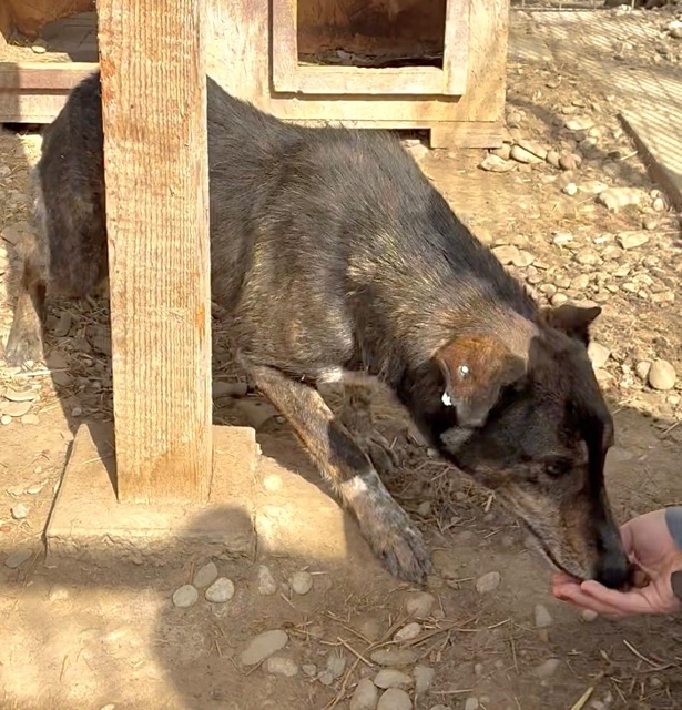 Wie soll man sich positiv entwickeln, wenn man völlig abgelegen und mit nur ängstlichen Hunden in einem Zwinger lebt? TALILA hat es. Die Hündin, die bereits seit 2 Jahren dort ausharrt, hat schon voller Freude auf uns gewartet und kam gleich zu uns gelaufen. TALILA hat Leckerli problemlos aus der Hand genommen und sich vorsichtig an der Schnauze anfassen lassen.
