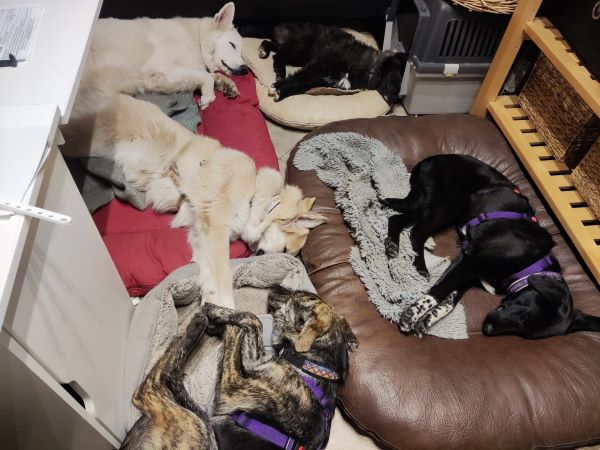 Das Gassigehen ist noch zögerlich, aber sie mag es. Geschirr anziehen, anleinen, losgehen, Talisa ist dabei. Inzwischen nimmt sie ihre Umwelt bewusst war, schnuppert, kann sich lösen.