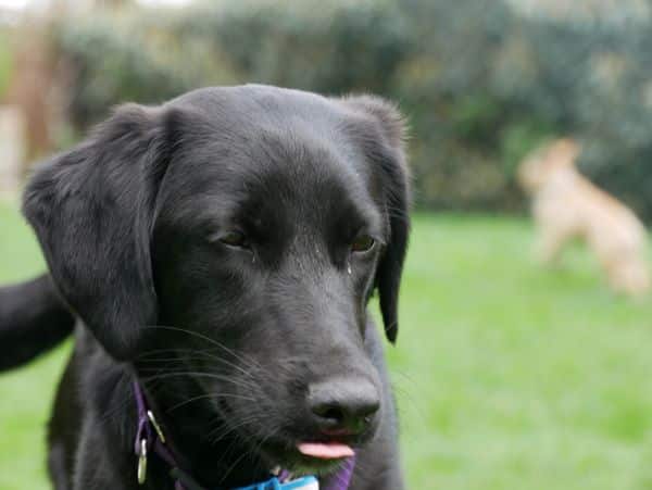 - Schwarzes Fell glänzend und weich, die lange kräftige Rute gerade getragen.