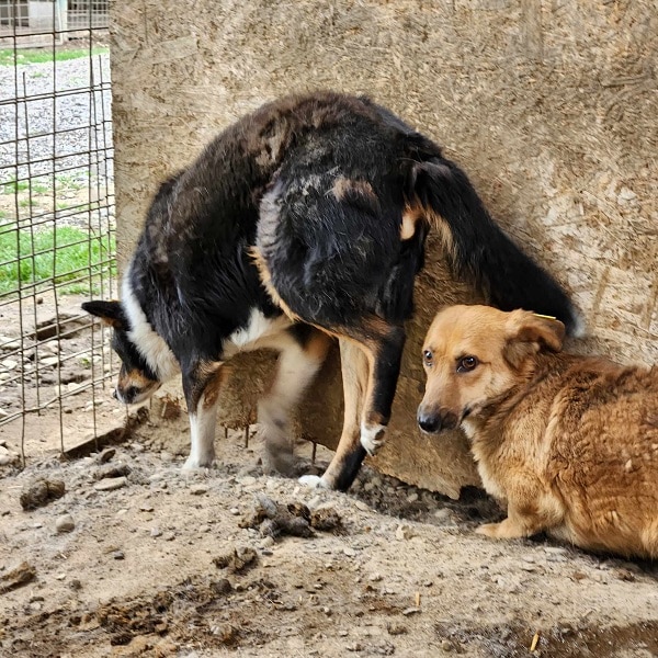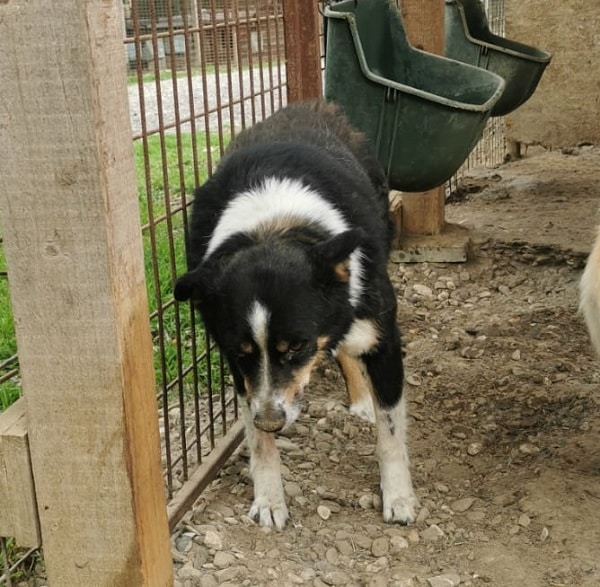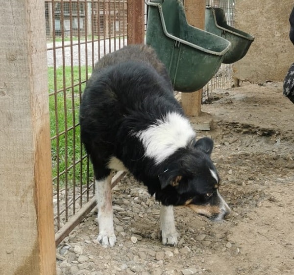 Die schwarze Wuschelhündin ist von ruhigem, devoten Wesen, was an ihrer geduckten Haltung ersichtlich wird. Das linke Hinterbein kann nicht belastet werden und ist in Schonhaltung hochgezogen. Die Schmerzen sind der armen Hündin förmlich ins Gesicht geschrieben, was sich auch in ihrem Verhalten gezeigt hat. Auf unsere Annäherungsversuche zeigte sie sich vorsichtig anfassbar, am liebsten hätte sie aufgrund ihrer Situation jedoch einfach ihre Ruhe gehabt. Die Tierärztin vor Ort ist entsprechend informiert, sodass sie hoffentlich bald wieder schmerzfrei sein wird.