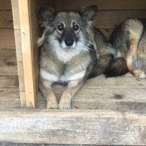 Talvi ist eine berührende, ältere Hündin, mittlerweile sehr zutraulich und gut anfassbar.
