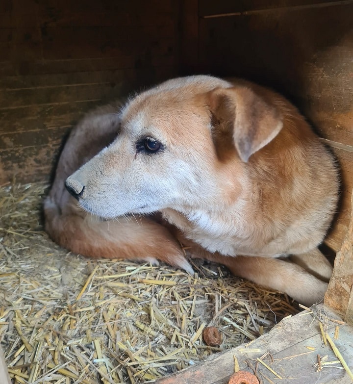 TAMARA fand unseren Besuch etwas unheimlich, so wenig Kontakt zu Menschen zeigt seine Spuren bei den Hunden. In der Hütte lässt sie sich unter Bedrängung anfassen und versteinert dabei. Sie wünscht sich Menschen, die Erfahrung im Umgang mit unsicheren Hunden haben und sie aus ihrer Welt locken.