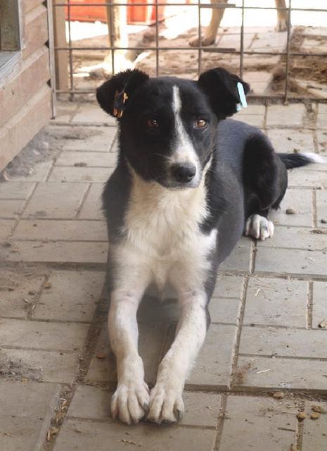 TAMARO zeigte sich bei unserem Besuch neugierig und interessiert, aber weiterhin unsicher. Der kleine, zarte Rüde geht etwas unter zwischen seinen größeren Kennelgenossen. Wir hatten den Eindruck, er hätte gerne unsere Leckerlies angenommen, aber leider hat er sich nicht getraut.
