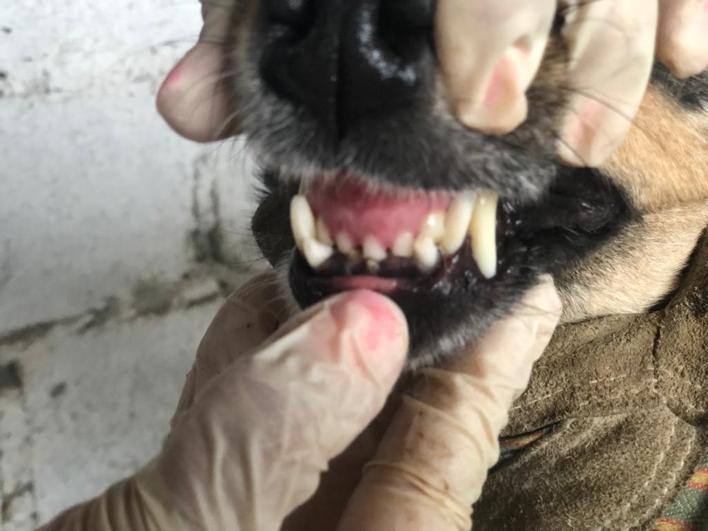 Hündin geb. ca. 2015 Größe: ca. 40-45cm Fehlstellung der Zähne, kommt sie mit klar