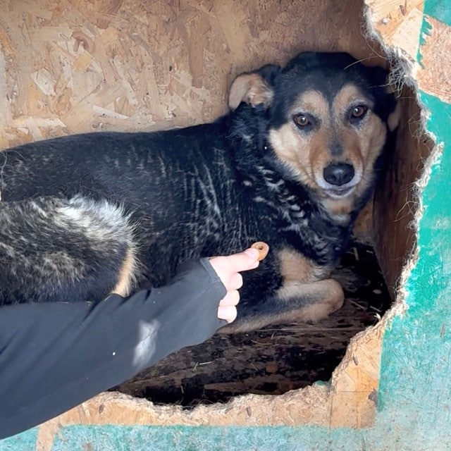 Unsere hübsche TANQUI hofft nun seit bald 6 unvorstellbar langen Jahren vergeblich im Shelter auf ihr Glück. Bei diesem Besuch zeigte sie sich erneut eher schüchtern und zurückhaltend, doch wenn wir sie nicht beachteten, kam TANQUI interessiert ganz nah heran, um uns zu beschnuppern. Ihre stille Neugier ist deutlich spürbar, doch im Shelter – bei den viel zu seltenen und kurzen Besuchen – kann sie nicht so recht über ihren Schatten springen. Daher konnten wir TANQUI nur im Schutz ihrer sicheren Hütte vorsichtig streicheln. Ganz geheuer war ihr diese intensive Nähe nicht – sie ist einfach zu fremd und daher ungewohnt – doch TANQUI machte es ganz brav mit. Wir sind uns sicher, dass sie bei sehr erfahrenen und einfühlsamen Menschen weiter Fortschritte machen wird, wenn sie behutsam an die Pfote genommen und Stück für Stück an ein Zusammenleben auf der Sonnenseite herangeführt wird. Mit Unterstützung und ohne Erwartungen an sie. Ein netter Ersthund, an dem TANQUI sich orientieren kann, würde ihr die Eingewöhnung zusätzlich erleichtern und ist hier ein Muss.