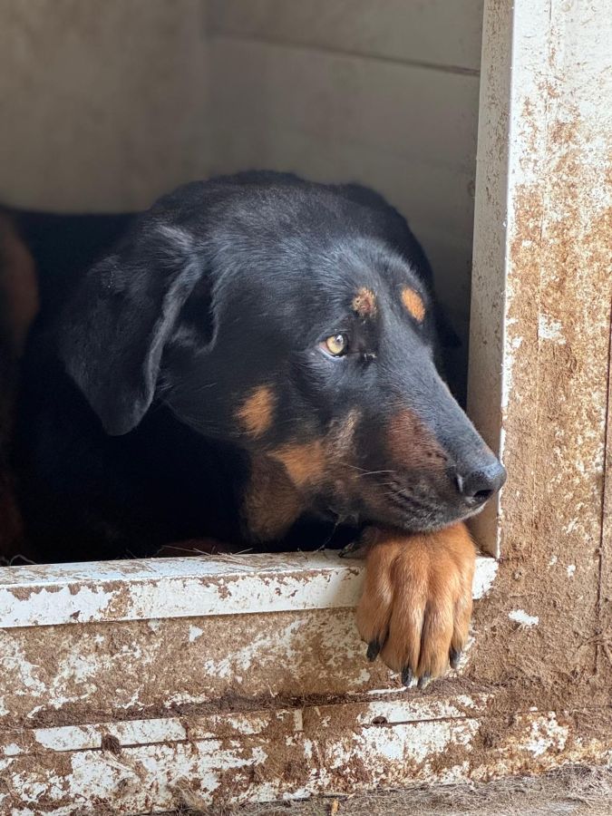 TAPO ist ein unsicherer, aber neugieriger Rüde. Er weicht aus, lässt sich nicht anfassen und hält lieber Abstand. Dennoch zeigt er Interesse an seiner Umgebung: Er kommt aus seiner Hütte, beobachtet aufmerksam und nimmt das Geschehen genau wahr, immer mit der nötigen Distanz. TAPO braucht Menschen mit Geduld, Erfahrung und einem ruhigen Umfeld, in dem er in seinem Tempo Vertrauen fassen darf. Mit Zeit, Sicherheit und liebevoller Begleitung hat er das Potenzial, vorsichtig aufzublühen.