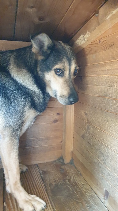 als wir im Kennel waren, saß sie ängstlich in einer Hütte und traute sich nicht raus, nahm weder Futter von uns, noch ließ sie sich anfassen