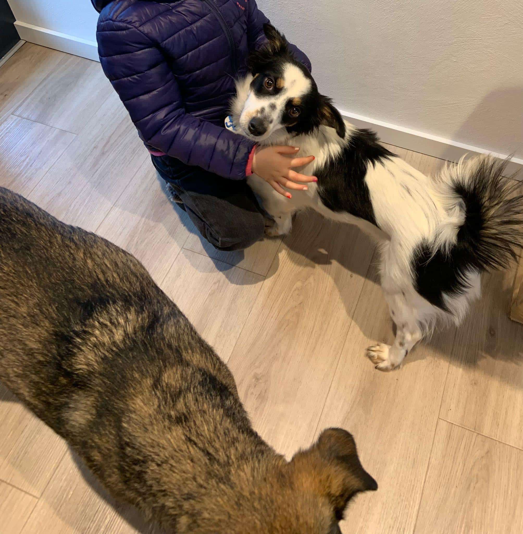 Fremde Hunde verbellt sie manchmal erstmal. Im direkten Kontakt ist sie dann aber freundlich. Sie weiß aber auch durchaus in „hündisch“ mit größeren Hunden zu kommunizieren, wenn die ihr zu aufdringlich werden.