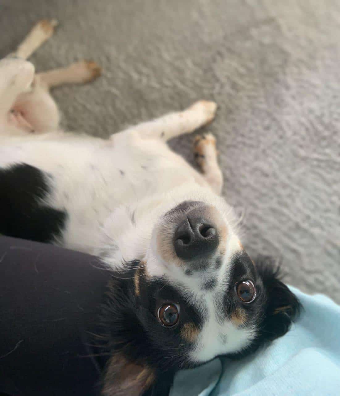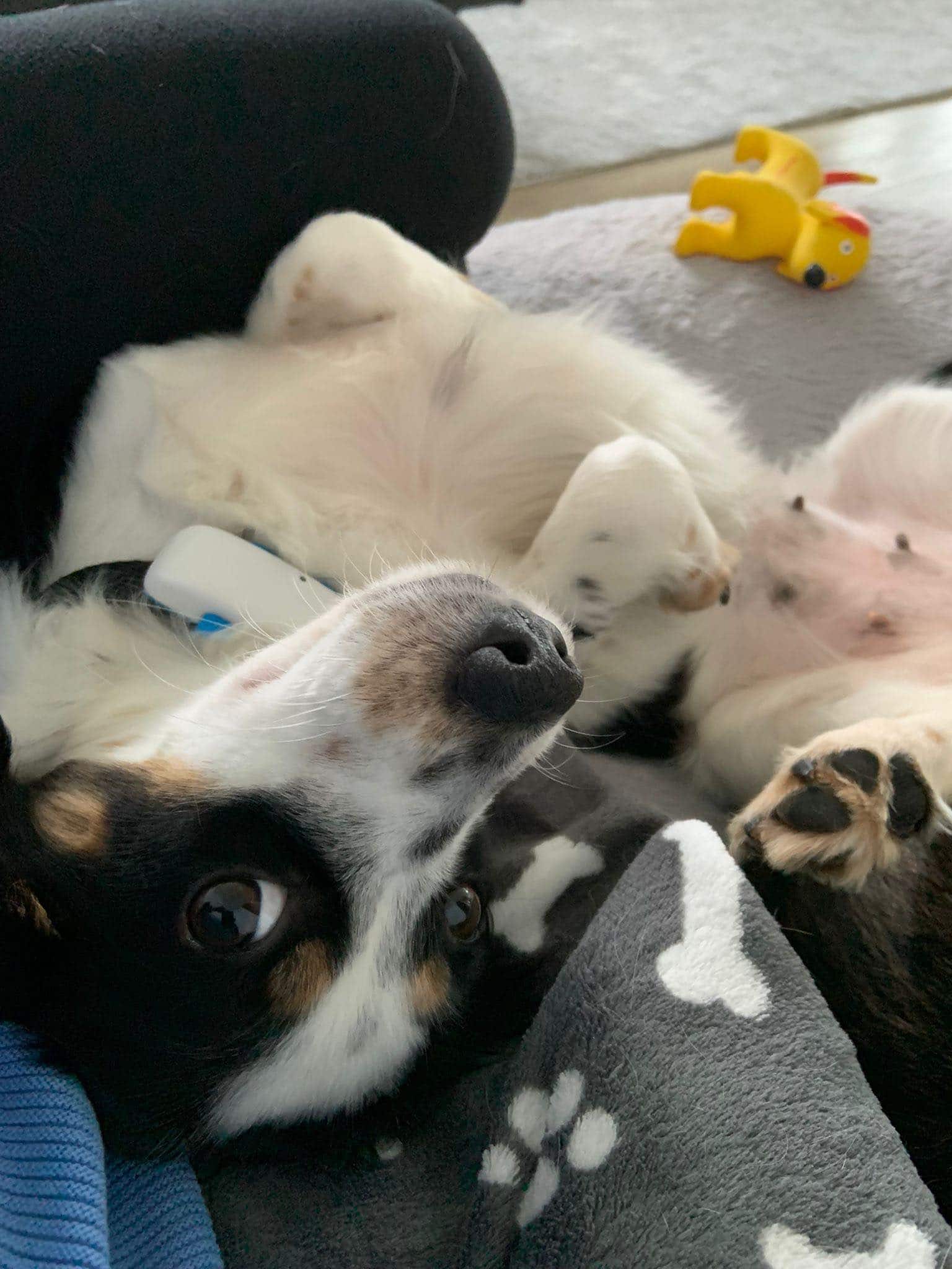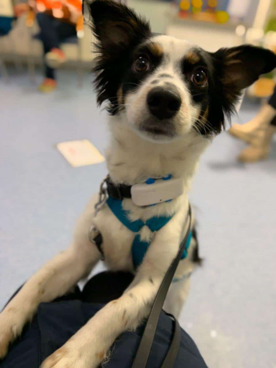 Als sehr anhänglicher Hund findet sie das Alleinebleiben natürlich unnötig, aber auch das üben wir fleißig.