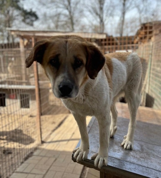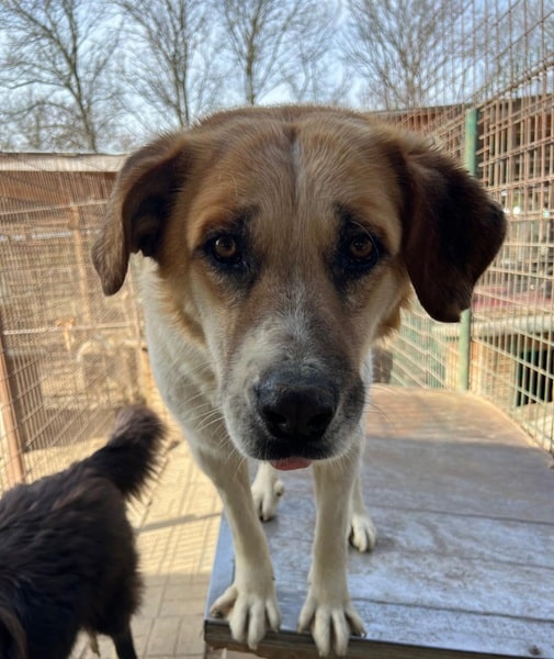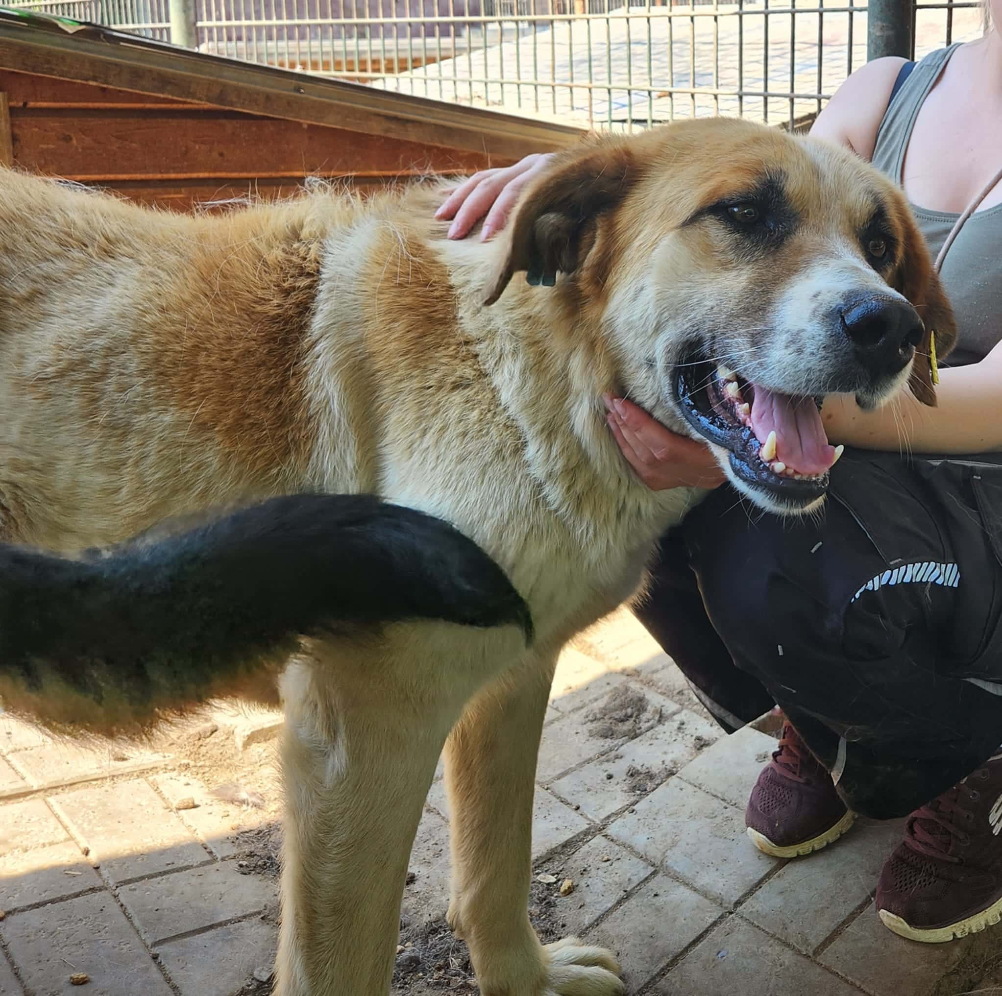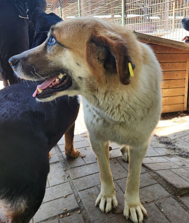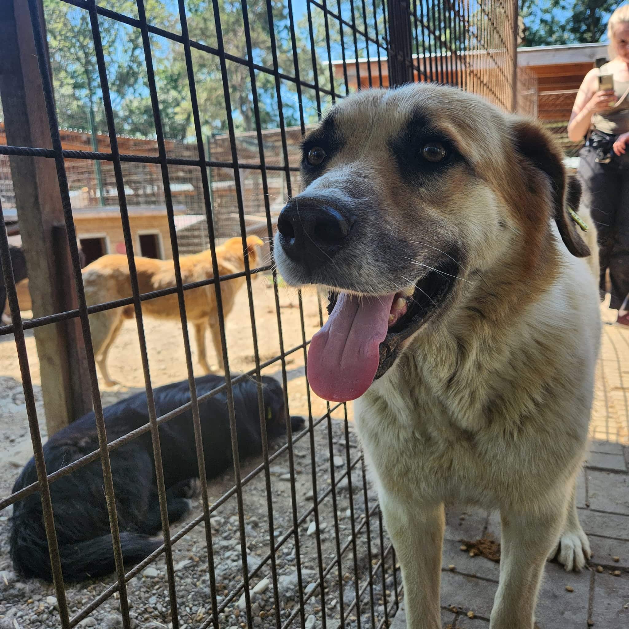 Er ist ein richtig netter Kerl, der sich einen winzigen Kennel mit einem weiteren großen Rüden teilt. TASSILO scheint da gut verträglich zu sein, wobei der andere Rüde recht zurückgezogen in der Hütte saß, obwohl er auch freundlich zu Menschen ist. Vermutlich stört ihn TASSILO mit seiner Energie.