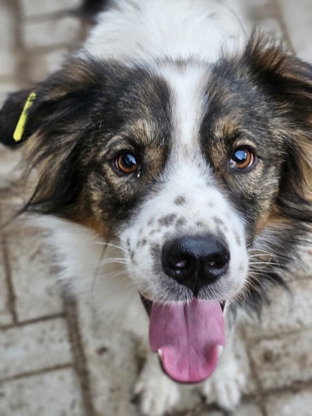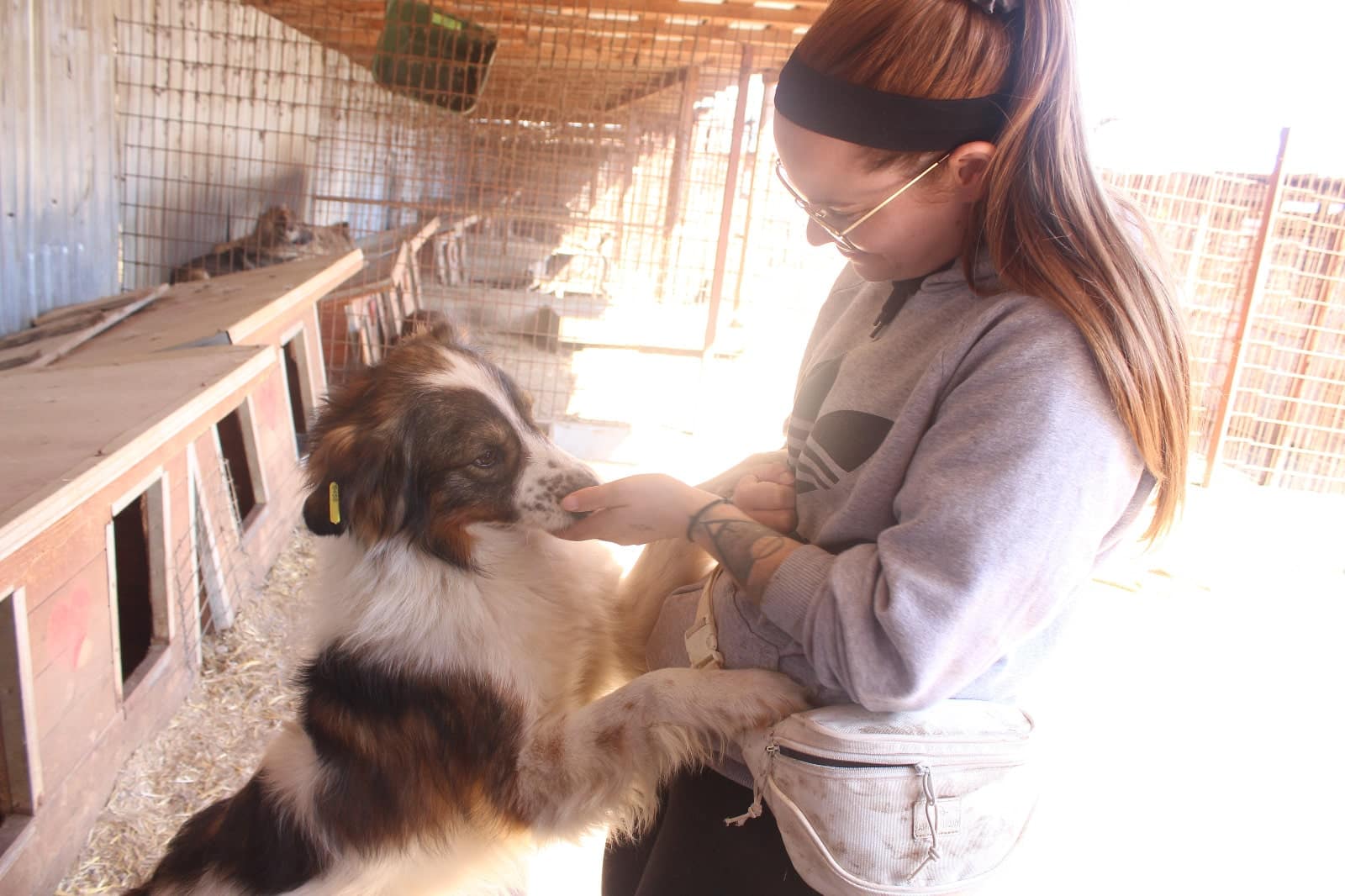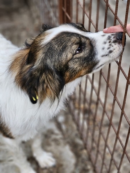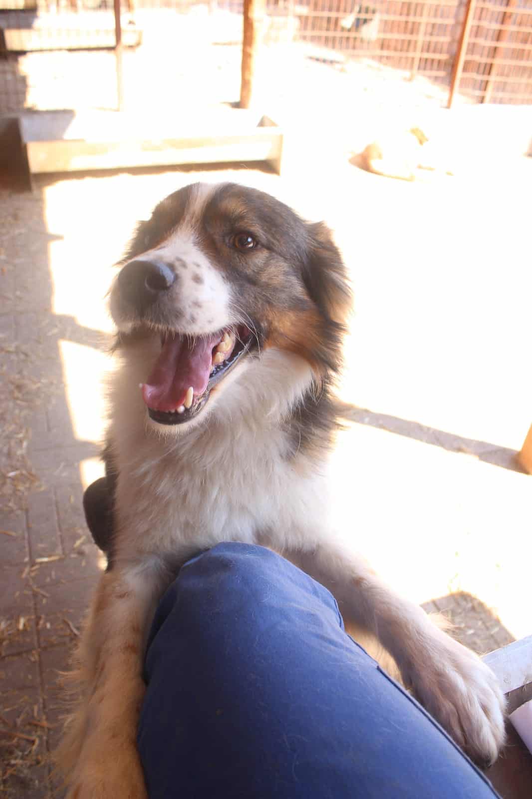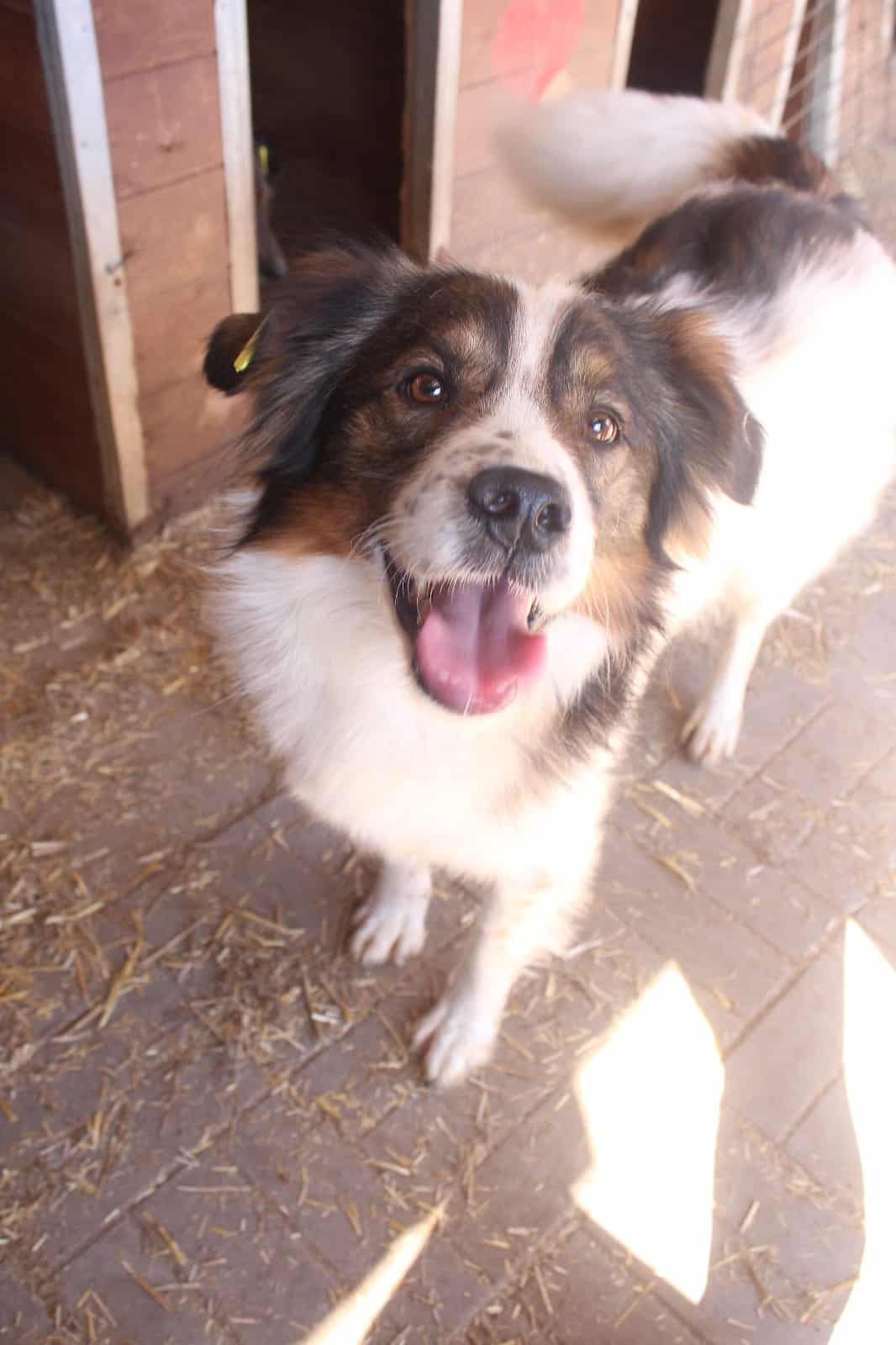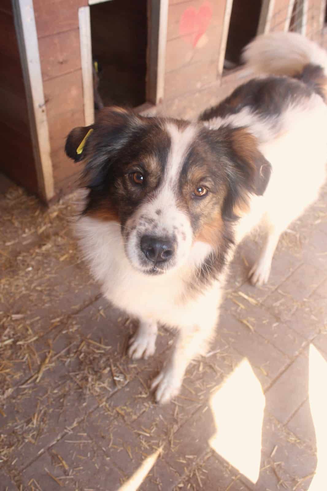 TAU ist ein Rüde, der im Shelter seelisch sehr leidet. Er war sehr aufgeregt über unseren Besuch und konnte es kaum erwarten, endlich menschliche Aufmerksamkeit zu bekommen. Er ließ sich sehr gut anfassen und ist total menschenbezogen. Er forderte unsere Aufmerksamkeit ein, zeigte sich temperamentvoll und verspielt. Genetisch vermuten wir, dass eine Arbeitshunderasse bei TAU mitgemischt hat. Er möchte gerne beim Menschen sein, er möchte beschäftigt und ausgelastet werden. Leider hat er im Shelter nichts zu tun und hat es sich augenscheinlich zur Aufgabe gemacht, den anderen Hunden im Kennel den Zugang zum Futter abzuschneiden und generell die freie Bewegung der anderen im Kennel zu regulieren. Während unserer Anwesenheit hat er dieses Verhalten nur einmal kurz gezeigt, ansonsten verhielt er sich den anderen gegenüber ganz normal. Wir vermuten daher auch, dass er nicht generell unverträglich ist, sondern dass er einfach nur nicht weiß, wohin mit seiner Energie. Weil ihm niemand eine Aufgabe gibt, hat er sich wahrscheinlich selbst eine gesucht. Uns Menschen findet er klasse – TAU hat sich sogar auf den Rücken gedreht und sich streicheln lassen, und dabei sogar kurz die Augen geschlossen.