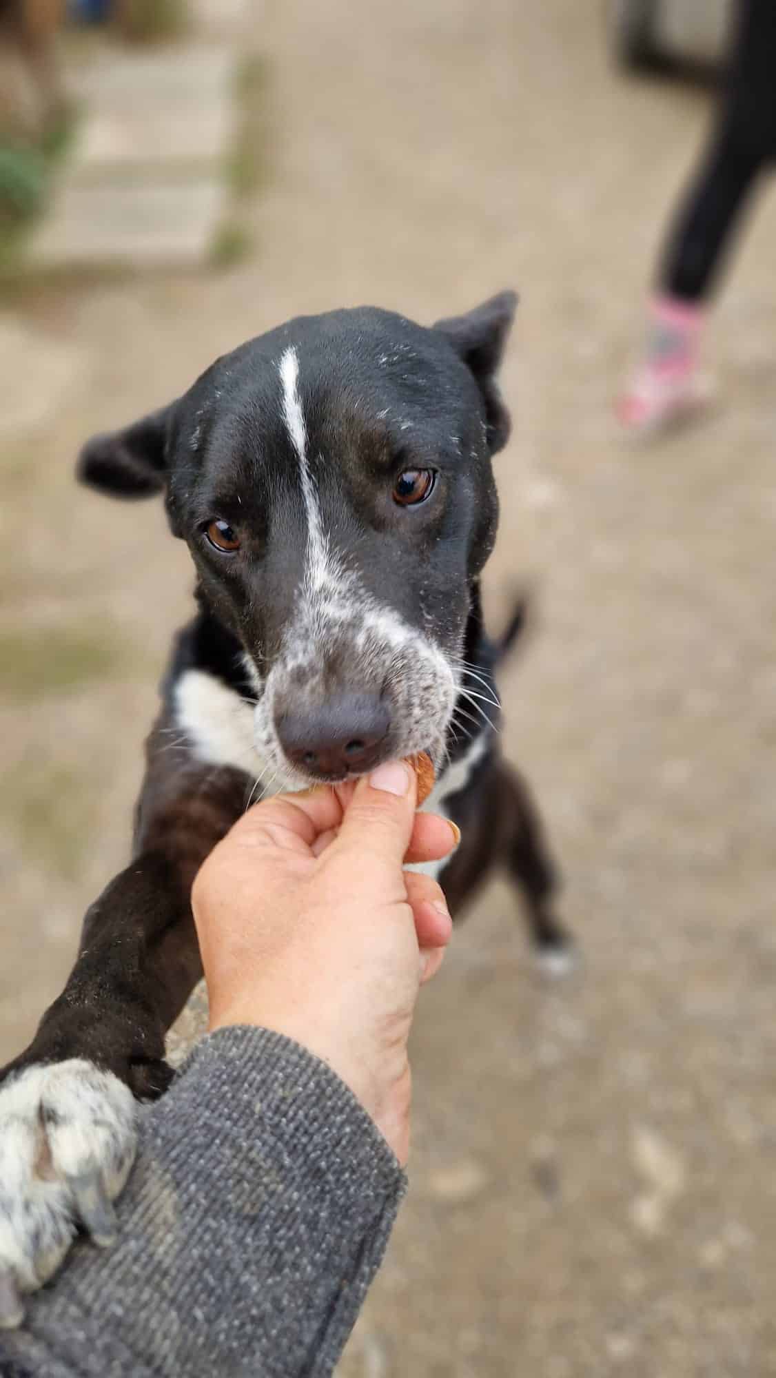TAYLAN ist weiterhin sehr aufgeschlossen und begrüßte uns freudig im Shelter. Unsere Mittagspause verbrachte er in unserer Nähe und kletterte einer Volontärin sogar auf den Schoß. Wir wünschen uns sehr, dass dieser absolut zauberhafte Rüde bald seine eigene Familie beschmusen darf! Mit seinen 3 Beinen kommt TAYLAN super zurecht und flitzt problemlos über das Gelände.