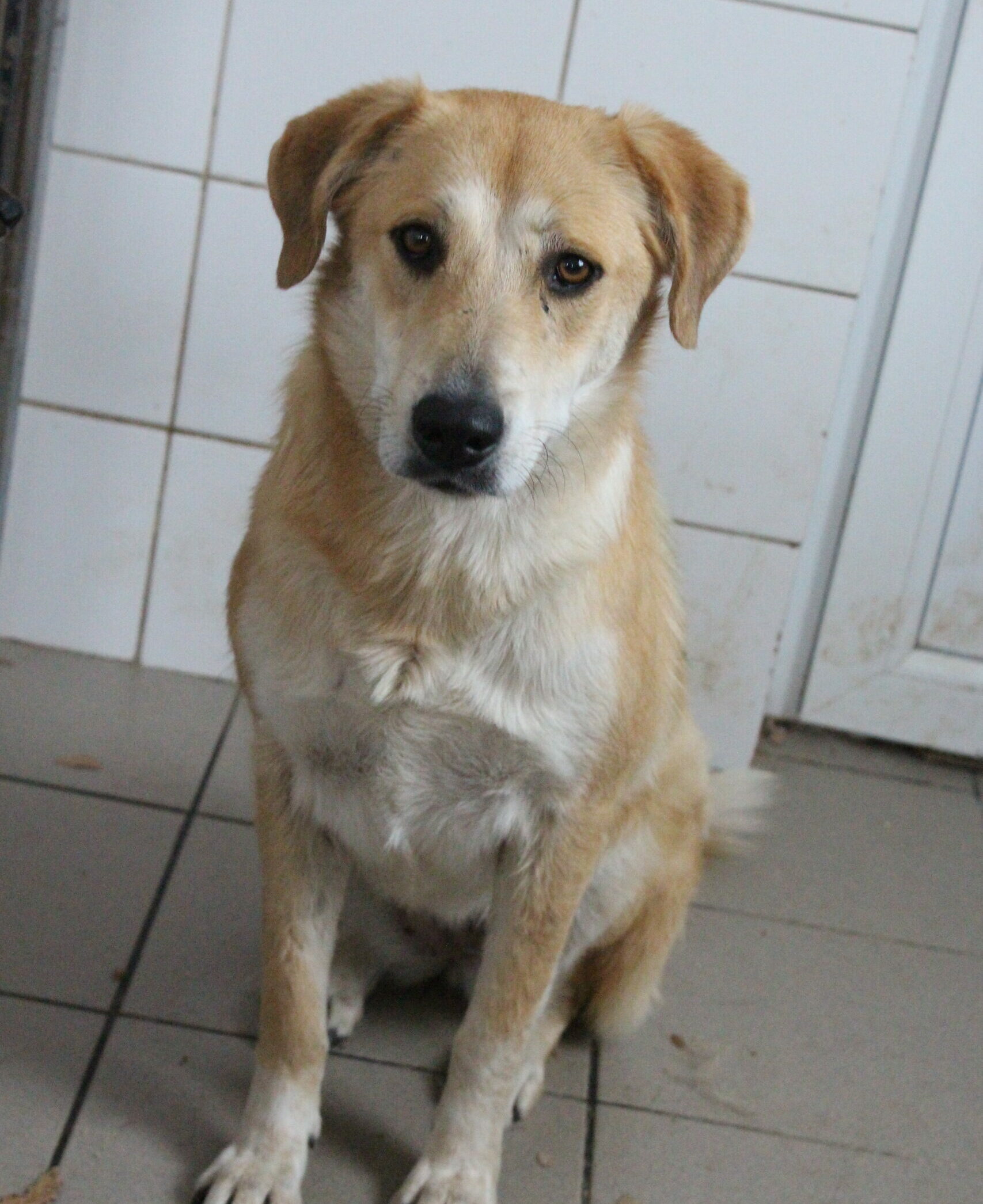 TENNA hat sich ganz toll gemacht. Sie ist zwar anfangs noch vorsichtig, aber offen und neugierig. Zuerst hat sie Leckerchen aus der Hand genommen, nach etwas Zeit ließ sie sich dann sogar streicheln und schien dies auch zu genießen. Eine liebe Hündin, die bei den richtigen Menschen schnell auftauen wird.