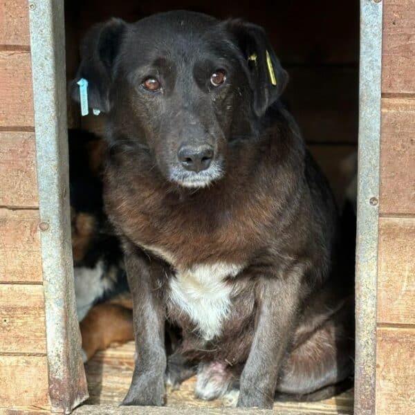 Der hübsche Rüde TEQUILA lag bei unserem Besuch in der Hütte. Er wirkte auf uns sehr müde und verbraucht. TEQUILA schlägt sich seit ein paar Monaten durch den täglichen Dauerstress in Bucov. Leider hat er auch mit Hautproblemen zu kämpfen.