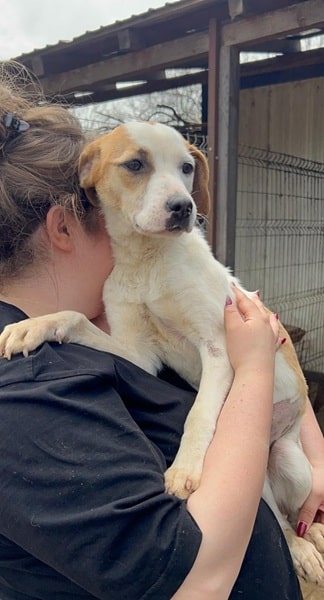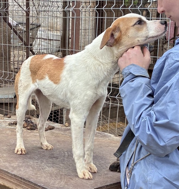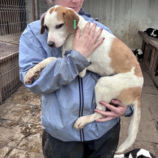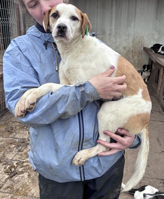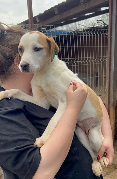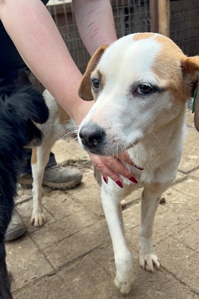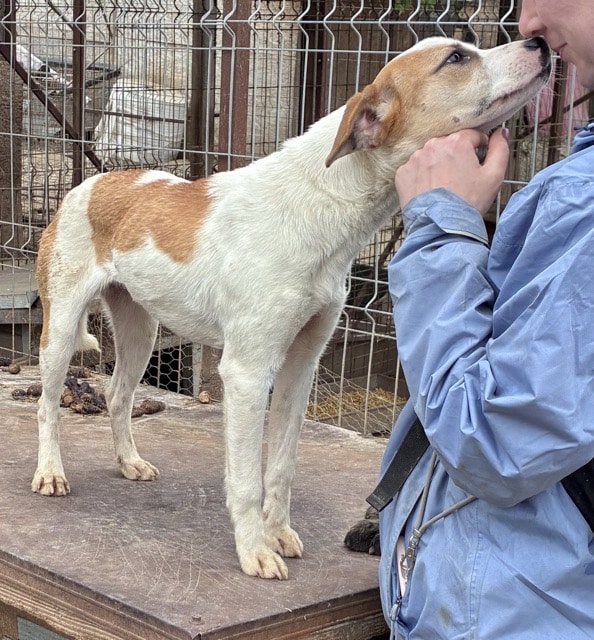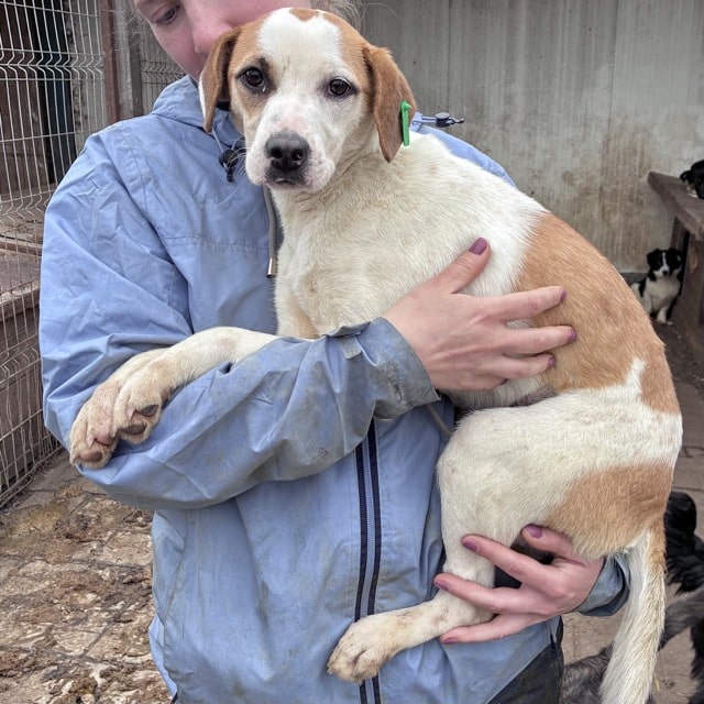 Diese zarte Hündin hörten wir bereits von Weitem, denn sie jaulte und jammerte, sobald sie uns Menschen sah – so verzweifelt sehnt Teti sich nach Nähe. Mit diesem Verhalten nervt sie leider die anderen Hunde in ihrem Kennel, weshalb Teti nicht besonders beliebt bei ihnen ist. Als wir davor standen, kletterte die waghalsige Maus am Gitter hoch und steckte den Kopf hindurch, was zum Glück glimpflich ausging, da wir sie retteten. Sofort wurde das Gitter verstärkt, sodass kein Köpfchen mehr hindurch passt. Kaum auf unserem Arm war Teti sofort ruhig und schmiegte sich an uns. Man merkte direkt ihre Erleichterung und sie war so froh über diesen kurzen Moment der Geborgenheit. Für diese rührende Hündin suchen wir dringend einen Platz und hoffen, dass sie diesen trostlosen Ort schon bald hinter sich lassen und in Geborgenheit ankommen darf. Andere Hunde braucht sie nicht, um glücklich zu sein – ist aber generell verträglich.