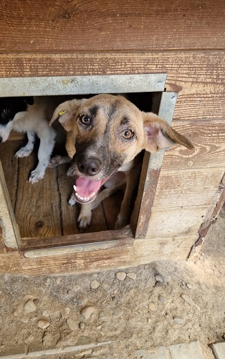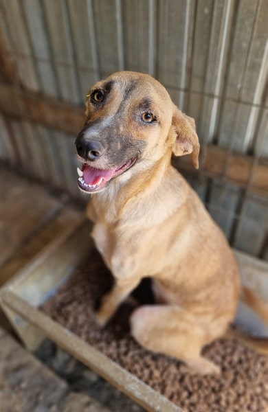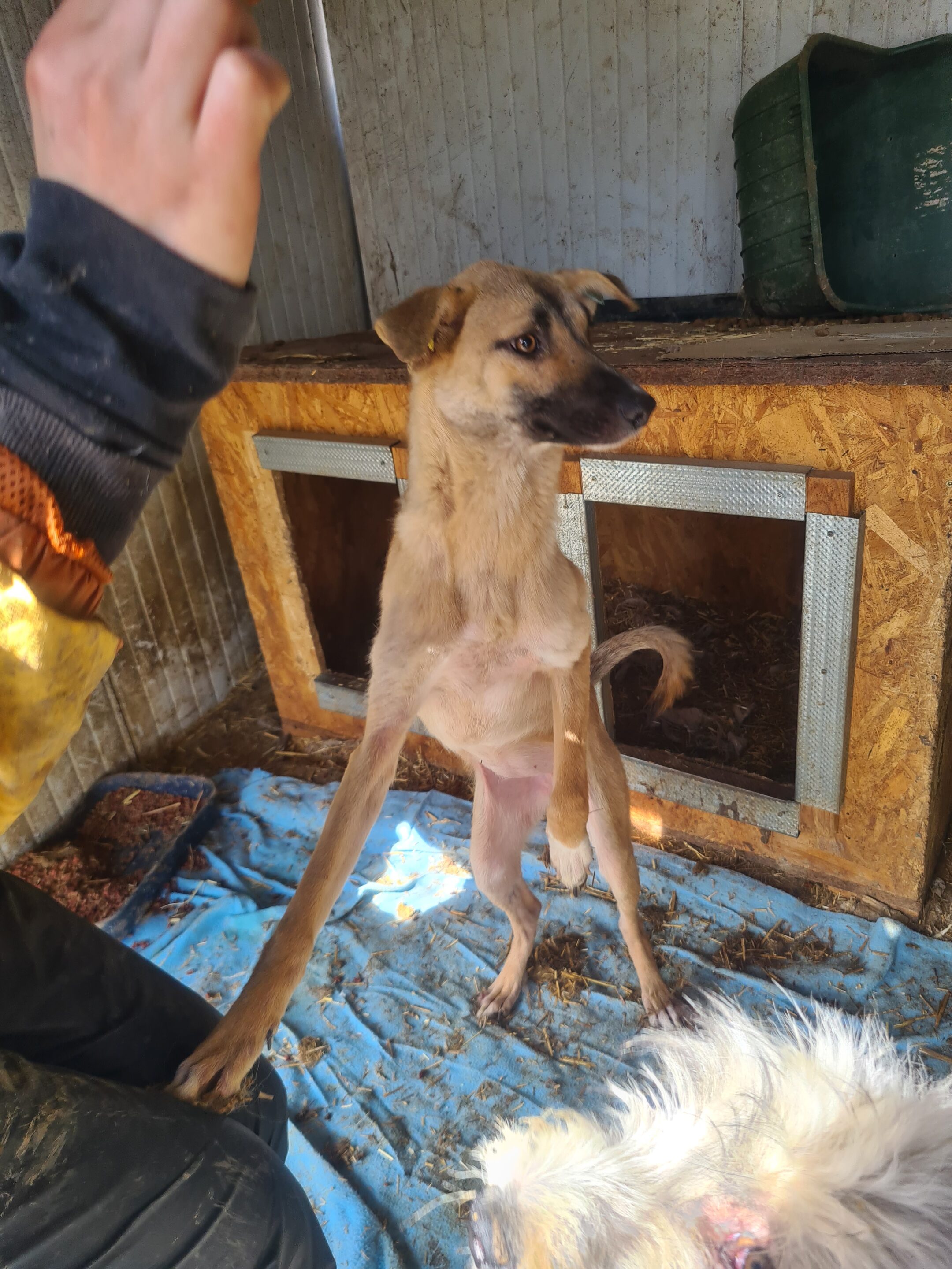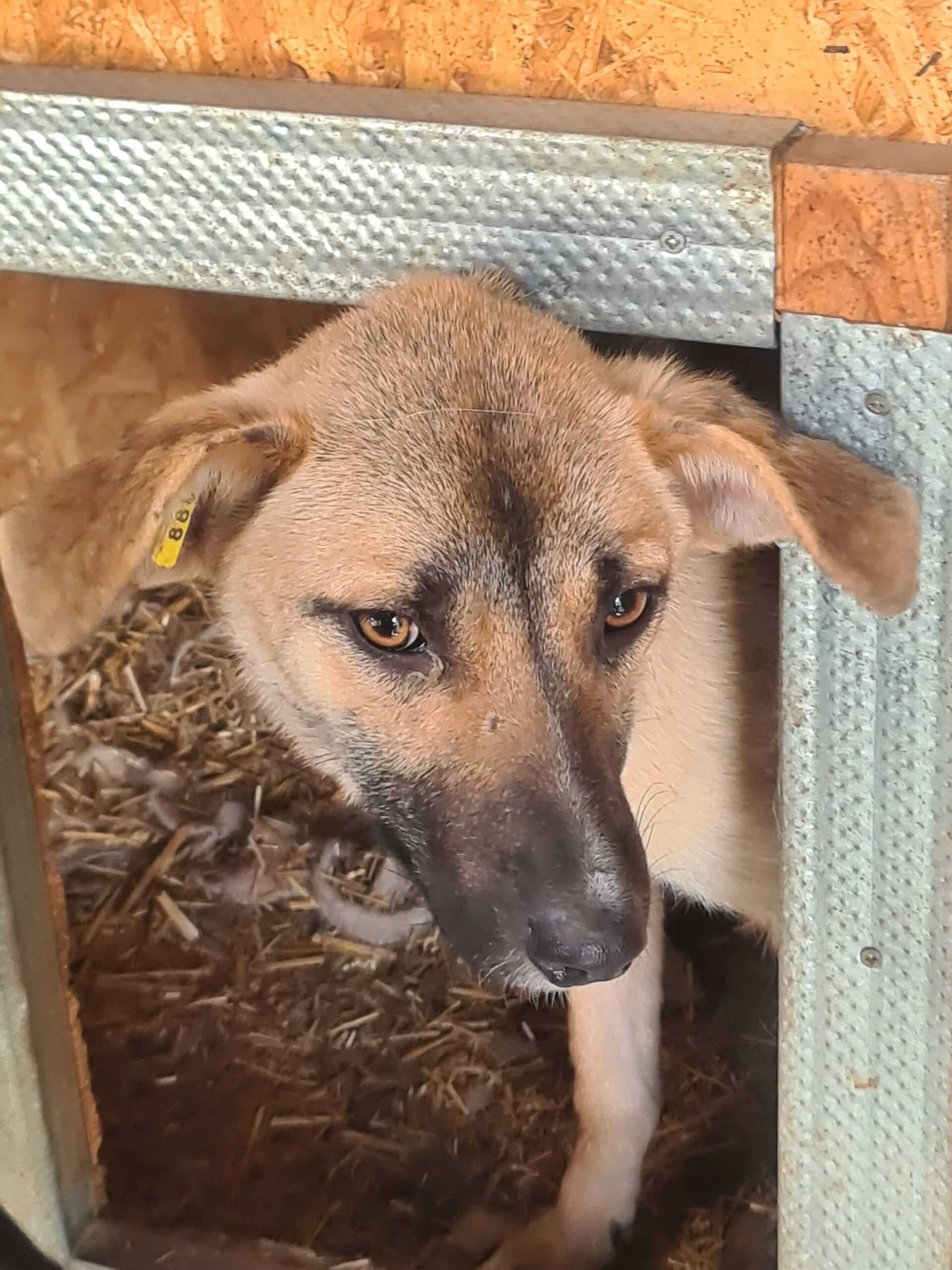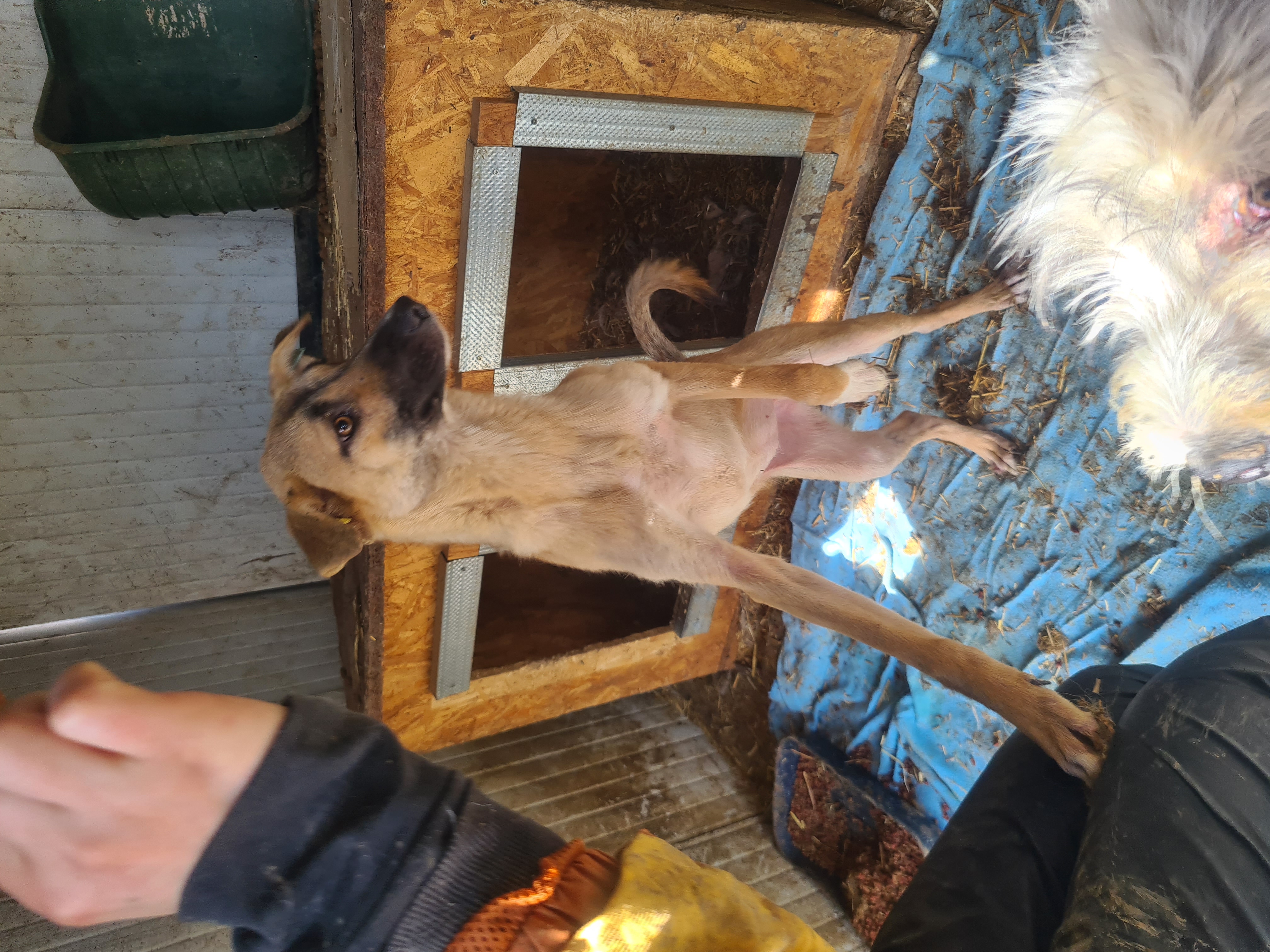 THEKLA leidet unter dem Stress in ihrem Kennel. Zwei dynamische Rüden bestimmen dort das Geschehen und sie versucht, so gut es geht auszuweichen. Völlig problemlos hat sie sich streicheln lassen und sich uns gegenüber auch nicht zurückhaltend gezeigt.