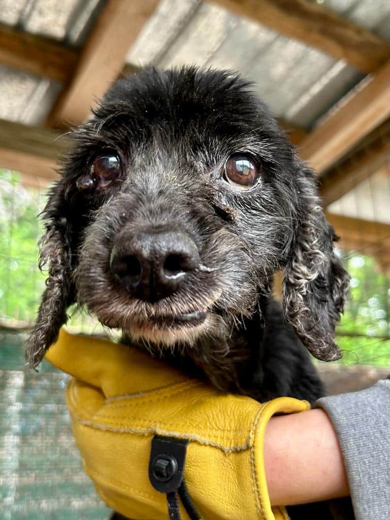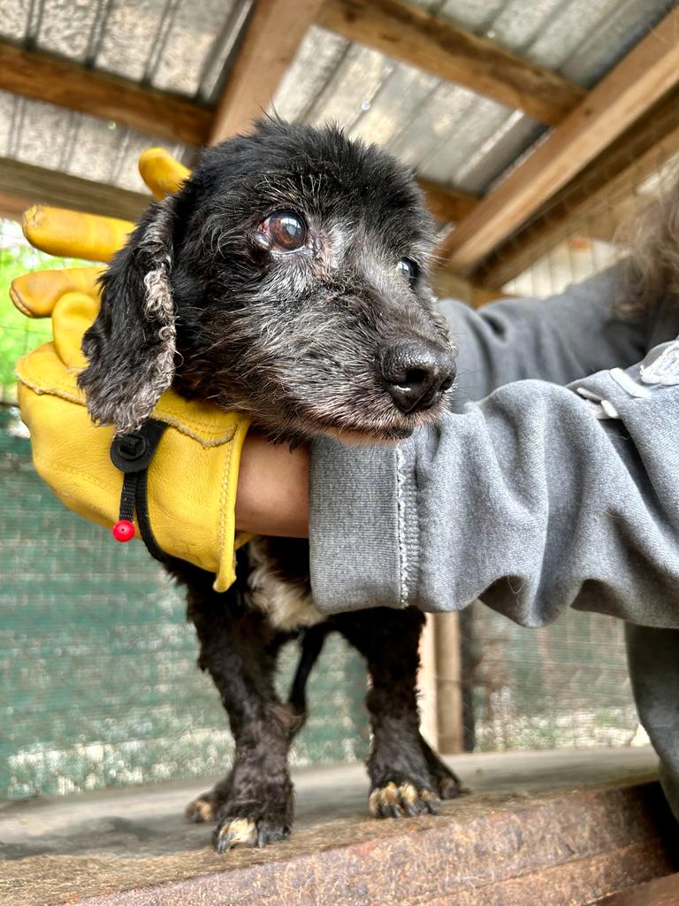 THELDA war anfangs nur in der Hütte und wollte mit uns nichts zu tun haben. Als wir sie dann rausholten, war sie doch etwas interessiert und wir konnten sehen, dass sie noch recht gut auf den Beinen ist.
