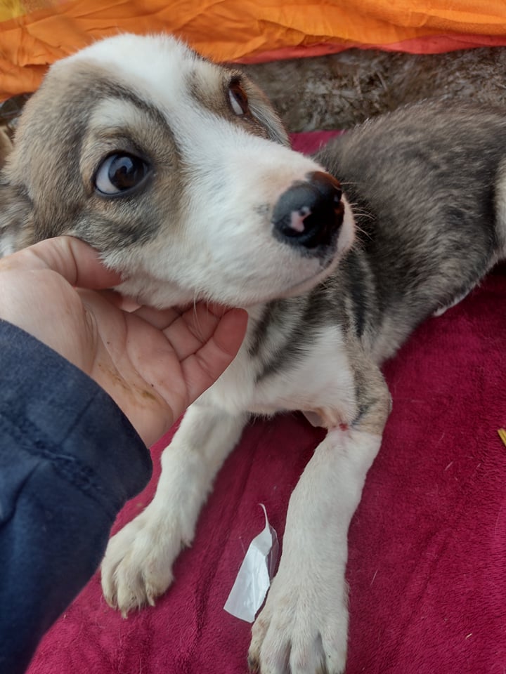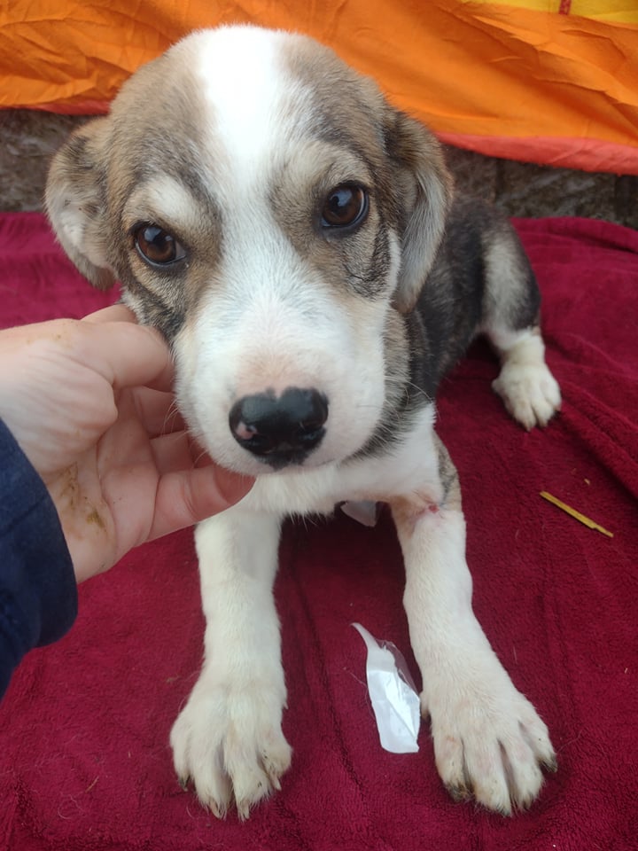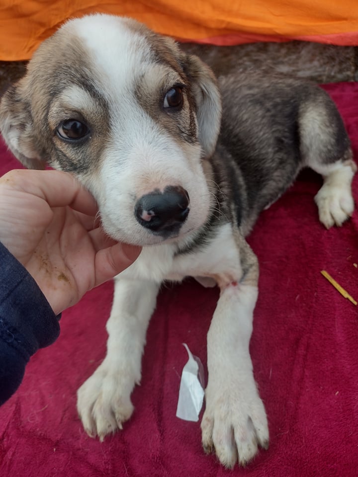 Wunde am Bein stammt noch von Infusionen in der Klinik, wo er erfolgreich gegen Parvovirose behandelt wurde