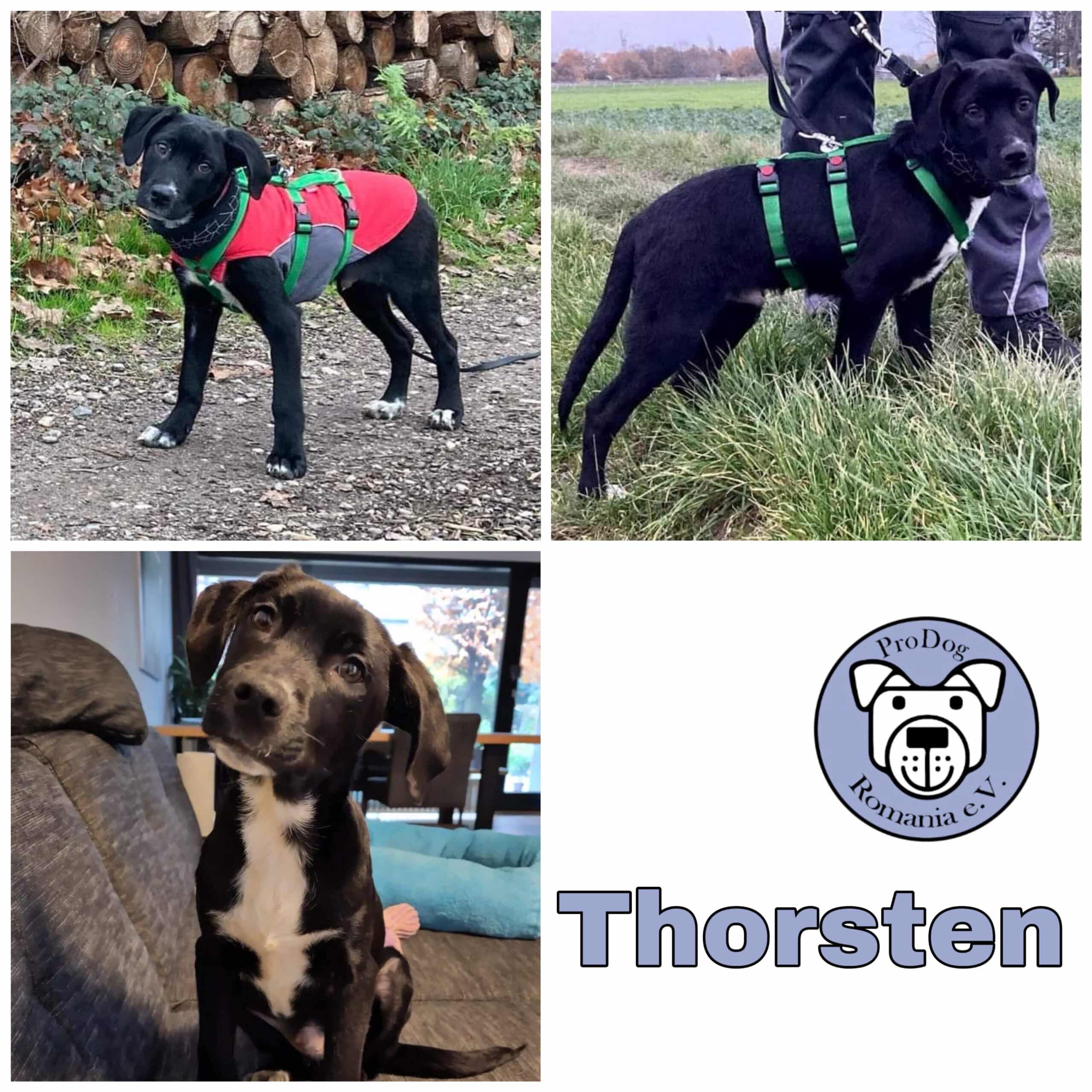Er lebt hier mit zwei Rüden zusammen, mit denen er gerne spielt und ihre Nähe sucht. Wenn es ihnen zu viel ist, akzeptiert er jedoch auch Grenzen und ordnet sich unter. Katzen kennt er und möchte gerne mit ihnen spielen, liegen sie jedoch einfach nur ruhig da und schlafen, lässt er sie in Ruhe. Fremden gegenüber ist Thorsten aufgeschlossen. Er begegnet Neuem zunächst schüchtern, taut dann aber schnell auf und lässt sich streicheln.