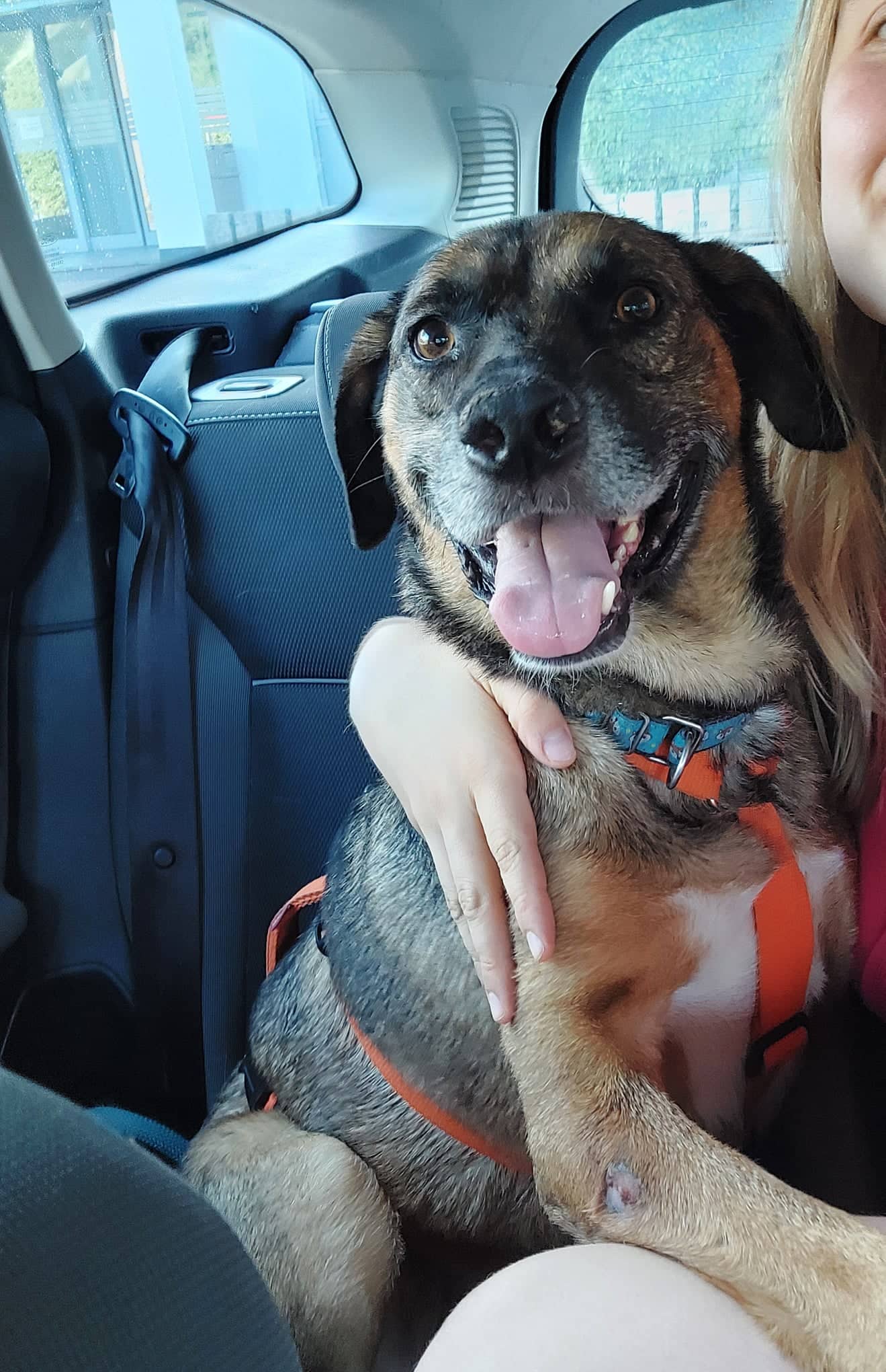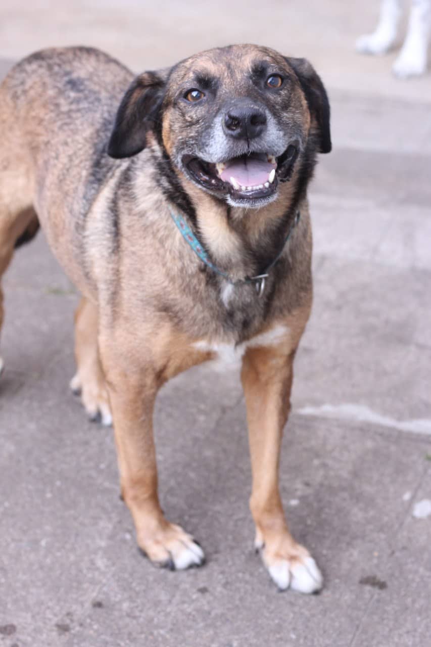 Thunder ist ein sehr menschenbezogener Rüde, der Anfang Juni 2022 nach über vier Jahren im Shelter auf seine Pflegestelle reisen durfte.