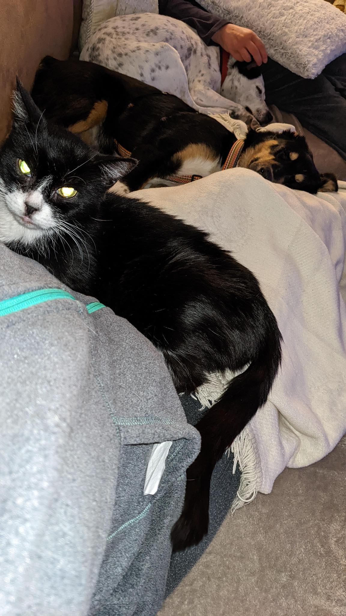 Gern kann Tiana auch zu bereits vorhandenen 4-Beinern vergesellschaftet werden, da sie bereits auf der Pflegestelle gut mit den beiden kastrierten Rüden und den Katzen zusammen lebt.