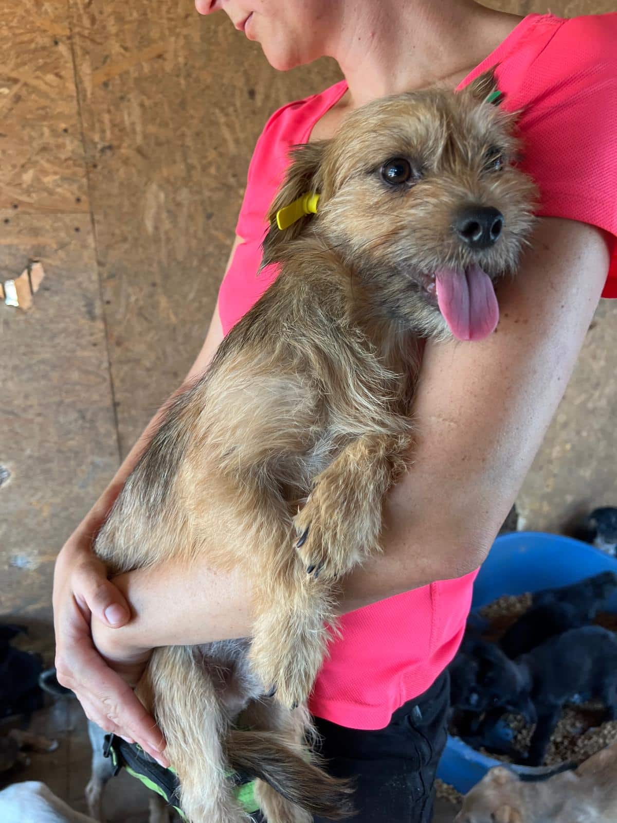 Der kleine TIES hat uns sofort freudig empfangen. Also wir uns mit ihm beschäftigten, ist er sofort auf den Schoß gekrabbelt und wollte am liebsten dort bleiben. Er sitzt in einem überfüllten Welpenkennel und hat den kurzen Moment der Ruhe vor den Kleinen total genossen. TIES hat sich uns gegenüber sehr lieb gezeigt und wäre am liebsten auf dem Schoß geblieben.