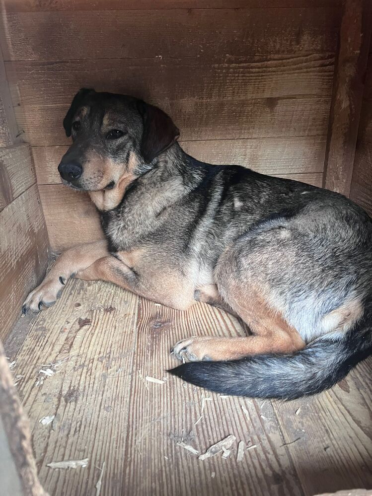 TIFA ist eine ruhige und zurückhaltende Hündin, die sich momentan noch stark im Hintergrund hält. Bei unserem Besuch fanden wir sie in einer Hütte in einem neuen Kennel, dort ließ sie sich anfassen, obwohl ihr der körperliche Kontakt noch fremd ist. Sie bleibt dabei stets devot und defensiv. Mit anderen Hunden ist TIFA absolut verträglich, möchte keinen Ärger, zieht sich lieber zurück und geht Konflikten aus dem Weg. Für sie suchen wir ein ruhiges Zuhause mit geduldigen Menschen, die ihr Zeit und Raum geben, in ihrem Tempo Vertrauen zu fassen.