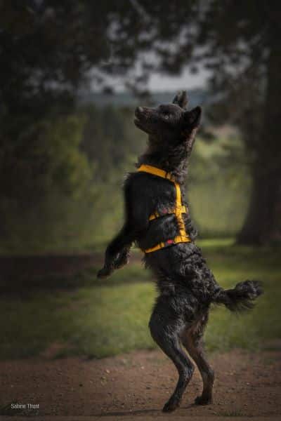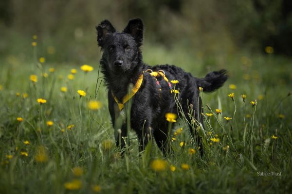 Erst seit kurzem hier auf der Pflegestelle, gestaltet sich sein Leben wie ein Aufenthalt auf einem großen Abenteuerspielplatz auf dem alles genau inspiziert und ausprobiert werden muss. Vom Temperament ist Tigris eher ein Duracell Hase, der mit Sicherheit seinen zukünfitgen Leuten einiges an Sportlichkeit abverlangen wird. Hundesport wie Agility oder ähnliches, wäre mit Sicherheit eine sinnvolle Beschäftigung für ihn. Er kann jedoch auch ganz gechillt mit den anderen Hunden ruhen, wenn man mit ihm nach einem ausgiebigem Spaziergang Ruhe übt und diese auch einfordert.