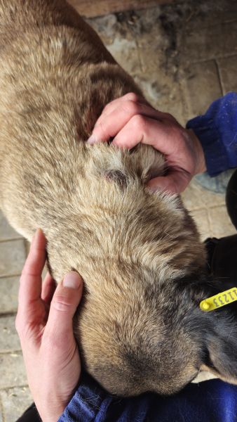 TILION wurde zusammen mit dem ebenfalls schlimmen Notfall ILARIA aus seinem Kennel geholt. Die beiden hatten das große Glück, gemeinsam ein Vetkennel-Abteil beziehen zu dürfen. Dort können sie gerade zum ersten Mal seit langer Zeit in Ruhe schlafen und fressen. Doch sie können dort nicht dauerhaft bleiben und suchen beide weiterhin dringend einen Platz. Müssen sie irgendwann wieder in einen Außenkennel wechseln, ist die Chance groß, dass sie erneut zu Opfern werden.
