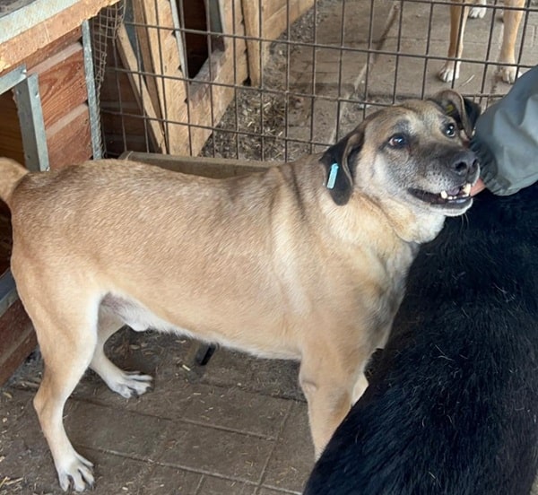 Der süße Tilion ist nicht mehr zu dünn, durch die mangelnde Bewegung und die Umsetzung in einen kleinen Kennel mit einem Rüden und einer Hündin, ist er inzwischen leider eher zu pummelig. In seinem Kennel kommt er ganz gut klar, allerdings wurde er kurz von dem anderen Rüden abgedrängt und es gab Ärger zwischen den beiden. Wir sehen ihn nicht als unverträglich, der Stress des Shelters setzt allen Hunden auch mental zu und es ist eine vollkommene Reizüberflutung für die Hunde, wenn es ein klein wenig Abwechslung gibt.