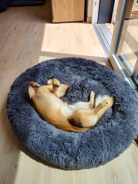 Er hat wohl zu viel König der Löwen gesehen und sieht sich im Charakter der Hyänen. Manchmal muss man ihn dabei etwas bremsen, denn eine Ablehnung der Spielkumpel kann er nur schwer akzeptieren, er macht einfach ungehemmt weiter. Im neuen Zuhause muss deshalb ein Spielkumpel in ähnlichem Alter sein, der genauso Lust am Spielen hat und dazu noch Durchsetzungsvermögen.