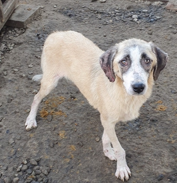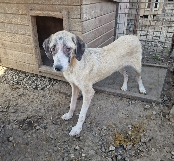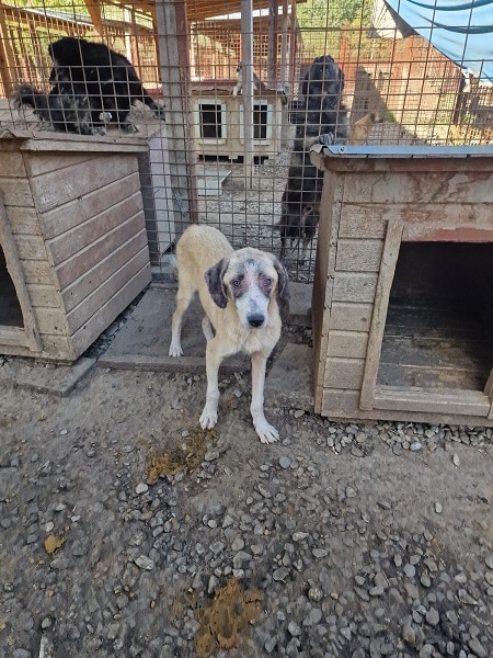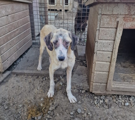 Leider hat Timon starke Hautprobleme entwickelt, das ganze Ohr ist verkrustet und auch sonst ist er immer noch recht dünn. Er sollte dringend ausreisen, damit er sich erholen kann, dass ist vor Ort bei Nass-kaltem Wetter leider kaum möglich.