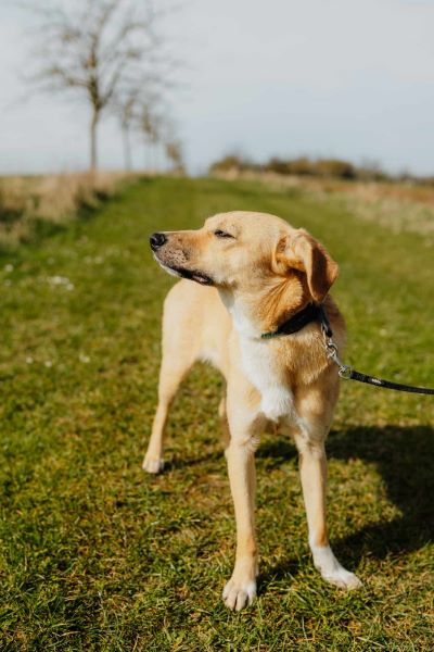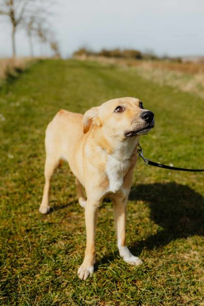 Die kleine Hündin ist Fremden gegenüber sehr zurückhaltend, insbesondere, wenn sie ihr sehr nahe kommen. Ist der Abstand groß genug zeigt sie sich vorsichtig neugierig. Hat sie erstmal Vertrauen gefasst, so schätzt sie die Zuneigung ihres Menschen sehr und ist auch für Späße zu haben. An der Leine läuft die junge Dame schon ganz ordentlich und auch im Freilauf ist sie gut abrufbar. Hierbei trägt sie aktuell aber noch eine leichte Hausleine, um sie in aufregenden Situationen nicht zu sehr bedrängen zu müssen. So sehr sie es mag gestreichelt zu werden – von ihren Menschen – so sehr verunsichern sie momentan noch körperlich einschränkende Situationen, wie das Führen am Halsband oder das Hochheben.