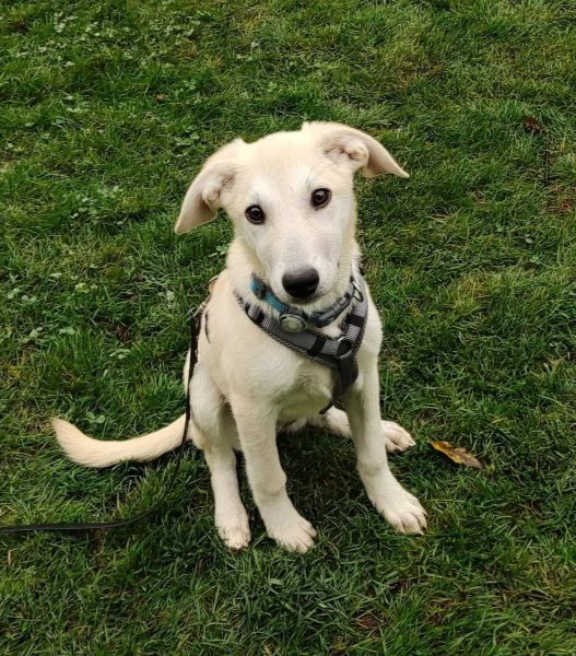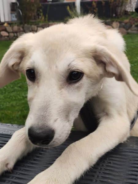 - Größe Stand 10/24: ca. 40 cm Schulterhöhe wächst noch