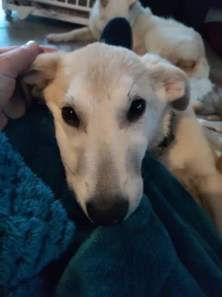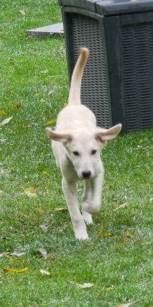Und da sind wir nun. Tinchen ist eine freudige junge Hündin, die mich anhimmelt, die mir vertraut und alles richtig machen möchte. Sie ist bei mir, schaut zu mir auf, lässt sich bereitwillig lenken. Eine feine Hündin, die das Zeug zu einer Seelenhündin hat. Und obendrein noch wunderschön. Ihr schlanker kleiner Körper ist eingehüllt in einen cremefarbenen Pelz; lange Beine, seitliche Kippöhrchen und eine gerade getragene Rute vervollständigen dieses perfekte Hundekind. Wer sie einmal an seiner Seite haben wird, hat Glück. Tinchen Glück.