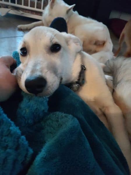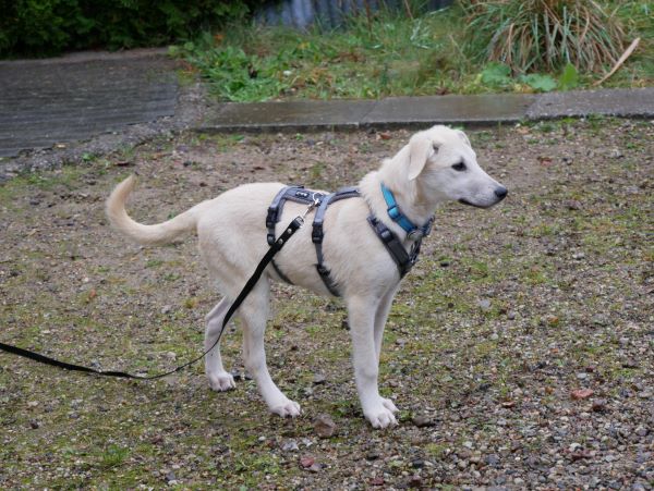 Sie lebt hier in einem Hündinnen-Rudel und versteht die Hundesprache perfekt. Sie ist niemals aufdringlich, niemals laut. Sie spielt gerne, holt sich aber auch immer wieder Rückbestätigung vom Pflegefrauchen. Sie mag spazieren gehen, neue Gerüche wahrnehmen, den Wind im Feld spüren, das Rascheln der Blätter im Wald hören. Dabei hält sie sich aber immer brav an Pflegefrauchen‘s Seite auf, passt auf, dass die nicht verloren geht. Sie fährt prima im Auto mit, steigt alleine ein, wartet beim Aussteigen. Sie ist nicht futterneidisch und man kann ihr jederzeit gefahrlos Dinge wieder abnehmen. Auf dem Weg zur Stubenreinheit muss man aktuell noch genau beobachten und schnell sein; sie ist halt wirklich noch sehr jung.