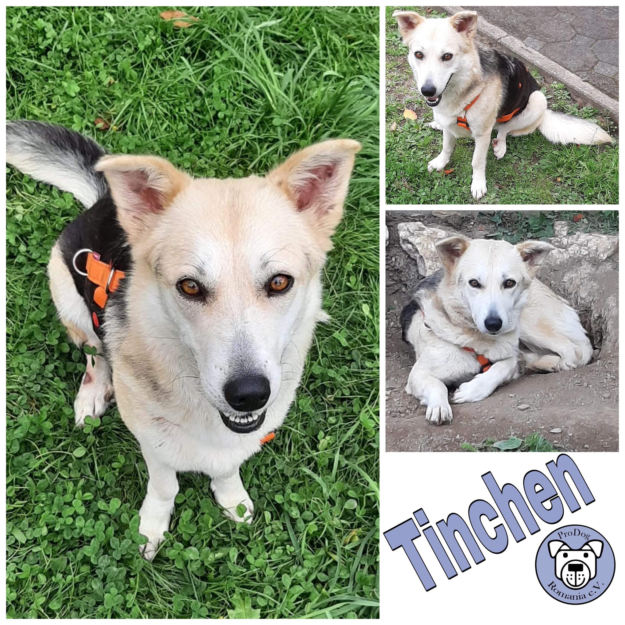 Tinchen ist eine ruhige, in sich ruhende liebe Hündin, die absolut auf Menschen bezogen ist. Sie ist am glücklichsten, wenn sie überall dabei sein kann. Von Schmuseeinheiten bekommt sie nie genug.