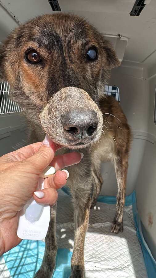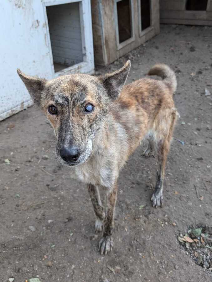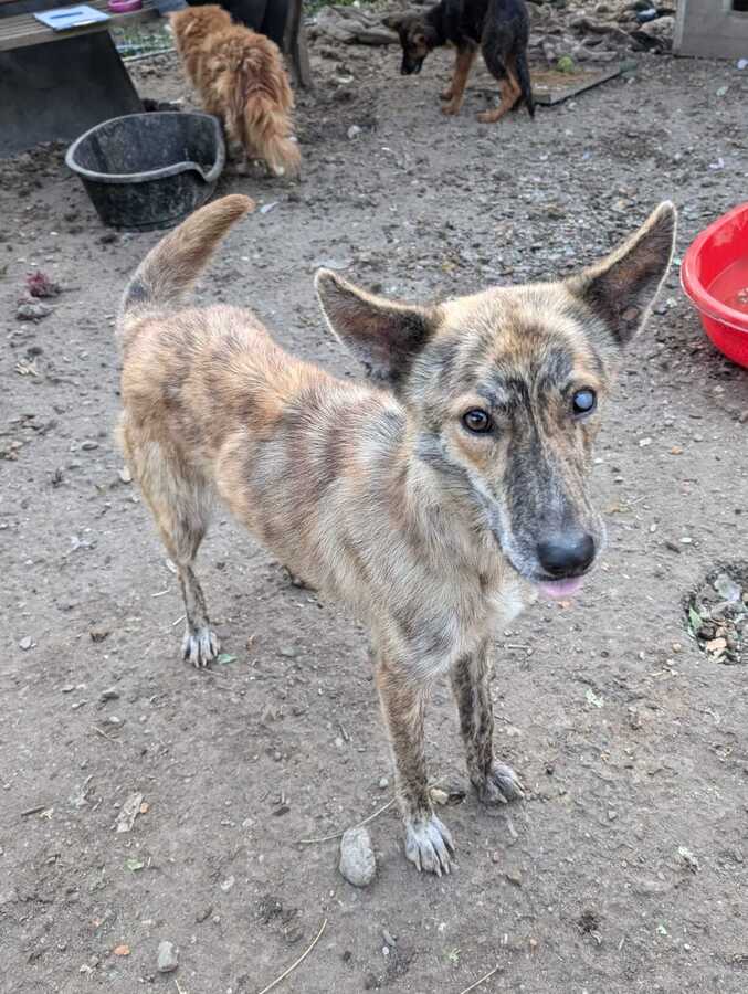Die freundliche Hündin TINKA wurde auf der Straße hungrig und fast verhungert gefunden. Eine deutsche Frau wurde auf die Hündin aufmerksam und brachte sie in das Shelter. Dort wurde sie medizinisch untersucht und versorgt, dabei war sie ganz brav und lieb. Die Tierärztin berichtete, dass sie alles wirklich tapfer mit macht. Die Augentrübung muss noch abgeklärt werden, ob die liebe Hundeomi dadurch auch eine Einschränkung der Sehkraft oder im schlimmsten Fall sogar blind ist.