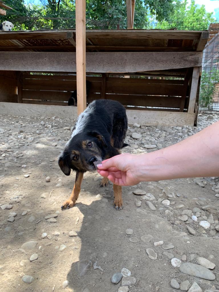 TINY ist viel offener geworden. Sie holt sich gut Leckerchen aus der Hand und ist neugierig. Sie weiß nur in ihrer Aufregung nicht so richtig, wie sie sich verhalten soll und ist noch etwas unsicher.