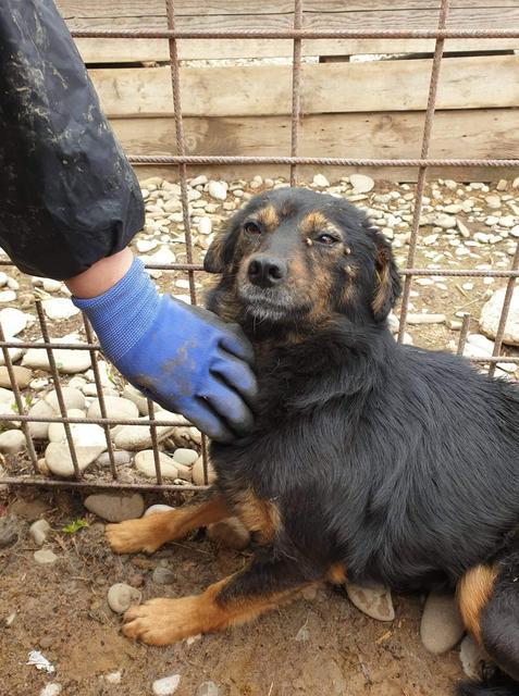 Da wir TINY mit einem Zeckenmittel behandeln mussten, sie uns aber nach wie vor auswich, haben wir sie vorsichtig in eine Ecke gedrängt. TINY ließ alles mit sich geschehen, wir konnten sie gut behandeln und mit der Zeit schien sie sogar unsere Streicheleinheiten zu genießen und schloss für Momente ihre Augen.