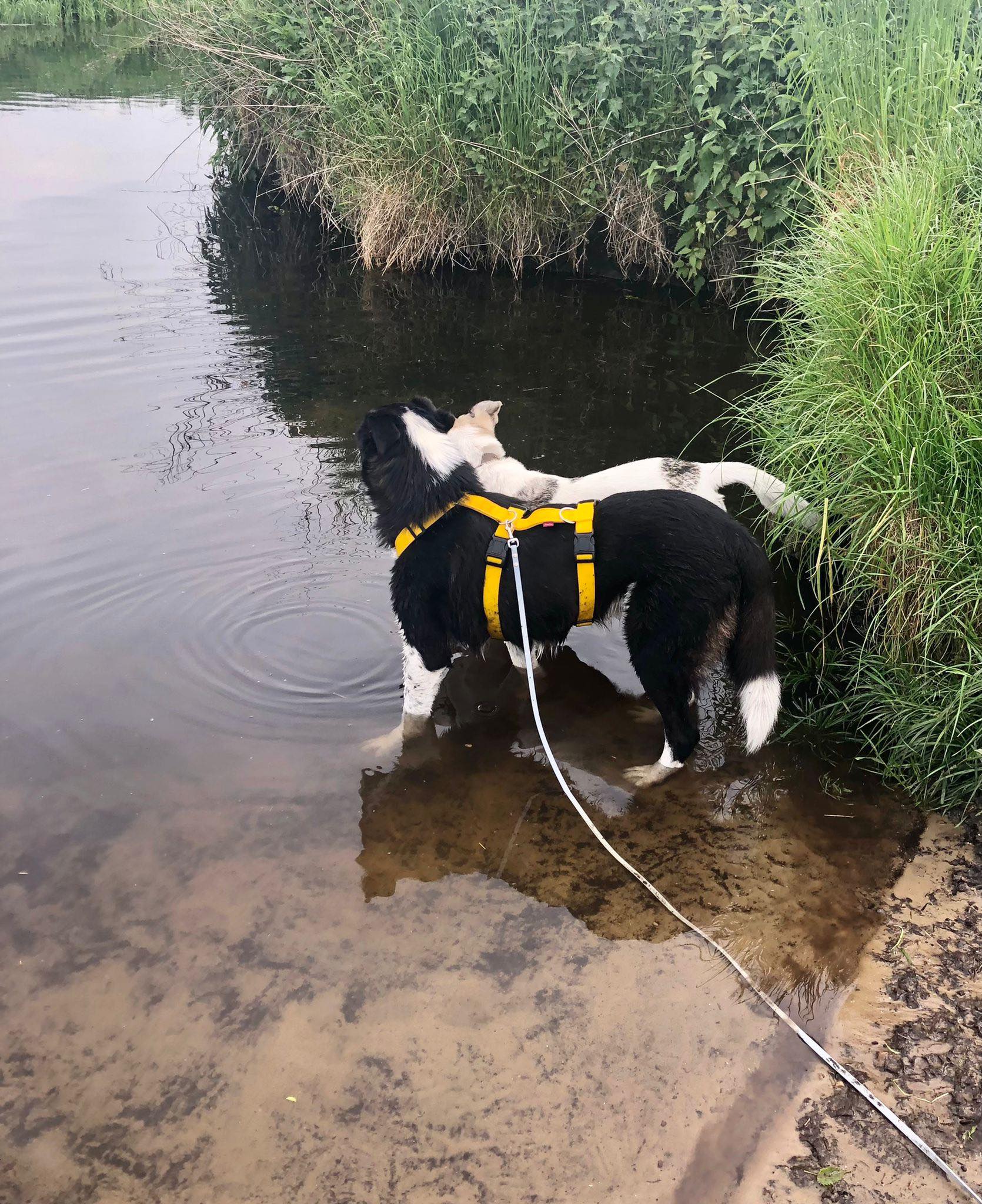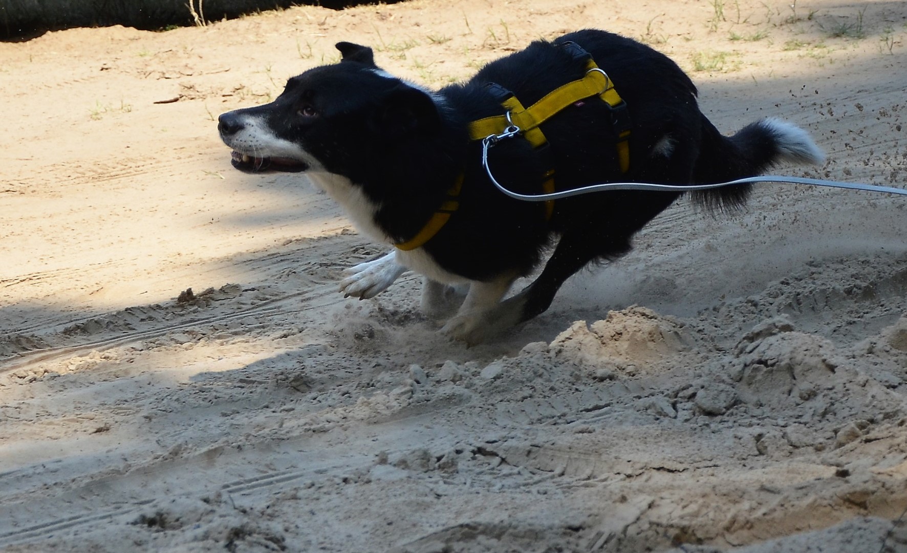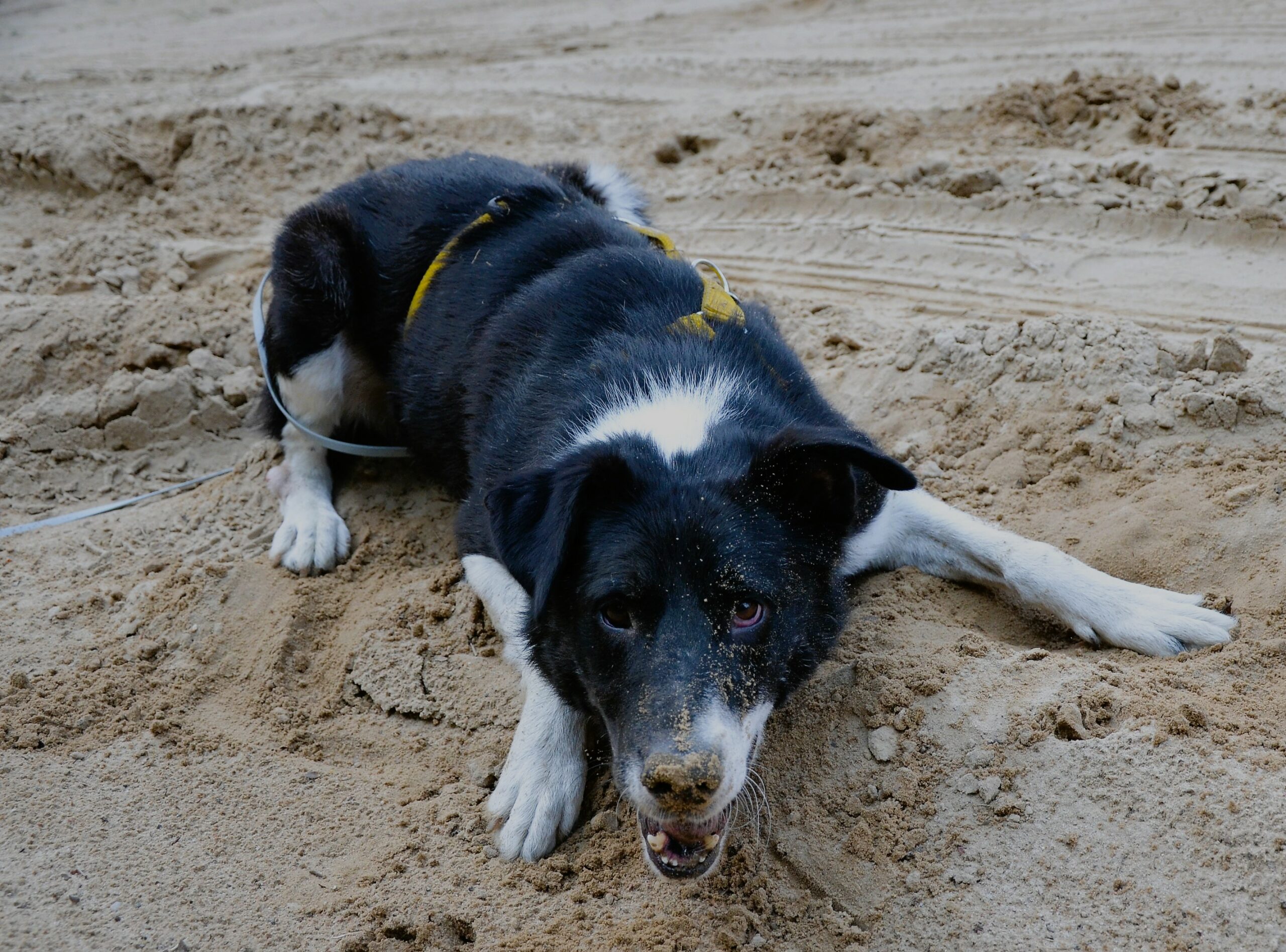 Auf Spaziergängen in belebten Gebieten guckt er sich zuerst alles genau an, bevor er weitergehen kann. Vieles macht ihm noch Angst. In Wald und Flur hingegen ist er sichtlich glücklich und läuft entspannt mit erhobener Rute durch die Gegend, wälzt sich zufrieden im Gras und plantscht im Wasser. Ich denke bald wird er das Seepferdchen absolvieren.
