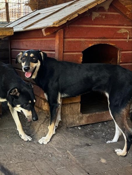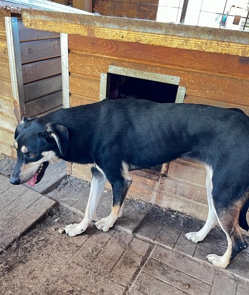 - sie und ihre fast identisch aussehende, ebenso unsichere Kennelgenossin (vermutl. Schwester) versteckten sich hinter den Hütten, als wir den Kennel betraten und wollten während unseres Aufenthalts auch nicht hervorkommen