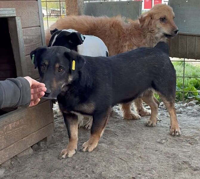 Der kleine TOBEY mit seinen kurzen, leicht krummen Beinchen durfte vom dunklen Vetkennel in einen Außenkennel umziehen, welchen er sich verträglich mit vielen Hunden im gemischten Rudel teilt. Die Nähe zu uns Menschen ist dem kleinen Kerlchen noch nicht ganz geheuer und so hielt er sich lieber im Hintergrund auf, um das Geschehen zu beobachten. Unseren Annäherungsversuchen wich TOBEY nach Möglichkeit aus. Wir sind uns sicher, dass er in einer stressfreien Umgebung bei erfahrenen und einfühlsamen Menschen mit Geduld schon bald Fortschritte machen und Vertrauen lernen kann. Wir wünschen TOBEY, dass er endlich gesehen und an die Pfote genommen wird, um in Geborgenheit anzukommen zu dürfen. Ein aufgeschlossener Ersthund wäre ihm sicher eine Stütze.